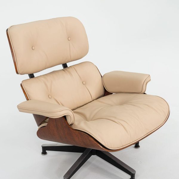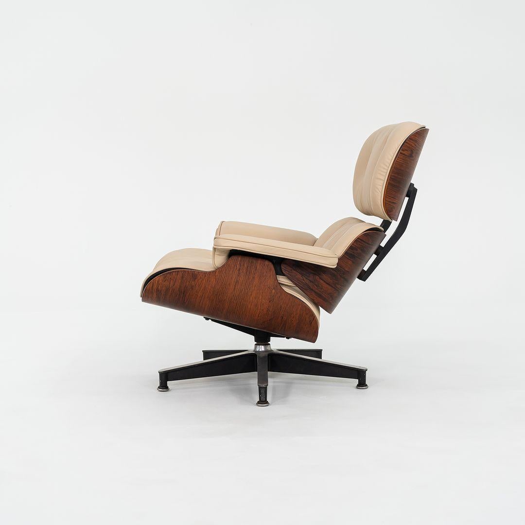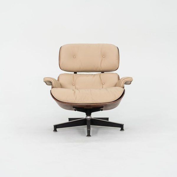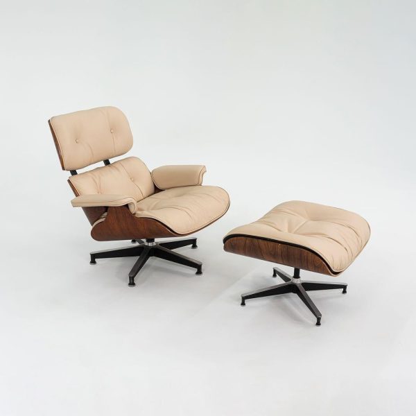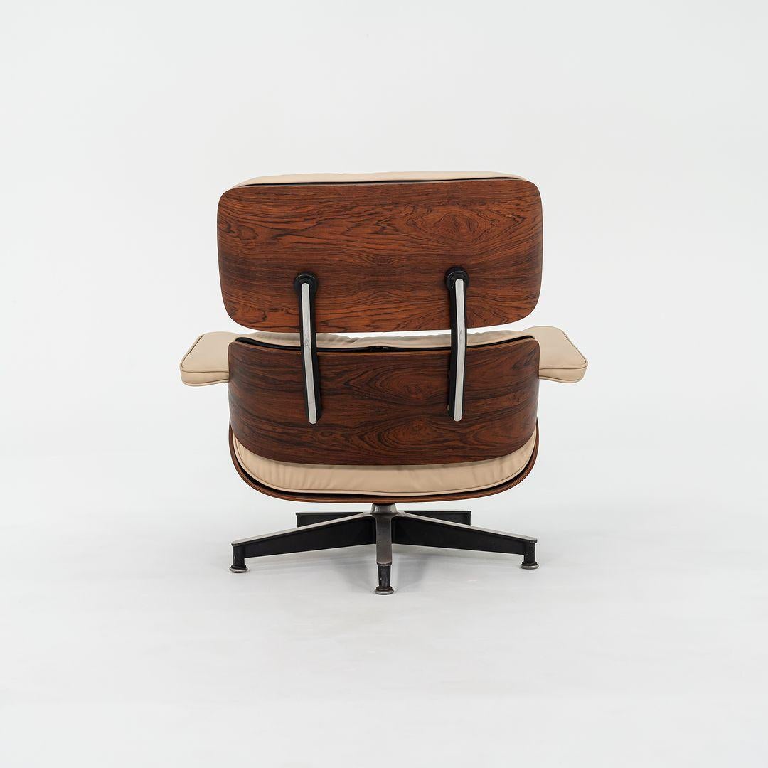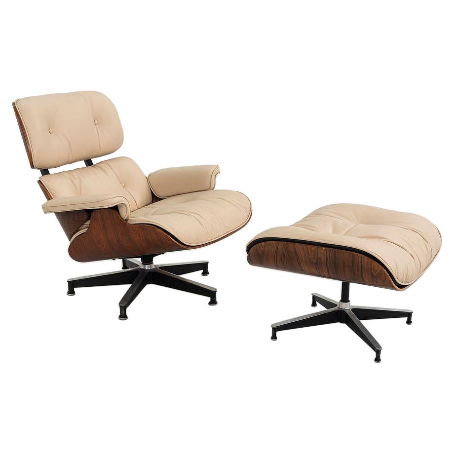 Creator: Herman Miller (Manufacturer), Charles and Ray Eames (Designer) Dimensions: Height: 31.5 in (80.01 cm) Width: 32.75 in (83.19 cm) Depth: 32.75 in (83.19 cm) Seat Height: 15 in (38.1 cm) Ottoman Height: 17.25 in (43.82 cm) Ottoman Width: 26 in (66.04 cm) Ottoman Depth: 21.5 in (54.61 cm) Sold As: Set of 2 Style: Modern (In the Style Of) Materials and Techniques: Aluminum, Leather, Brazilian Rosewood Place of Origin: United States Period: 1950-1959 Date of Manufacture: 1958 Condition: Good – Lightly used, with very light scratches, or minor cosmetic wear, but has no structural issues. Most antique and vintage items fit this condition.