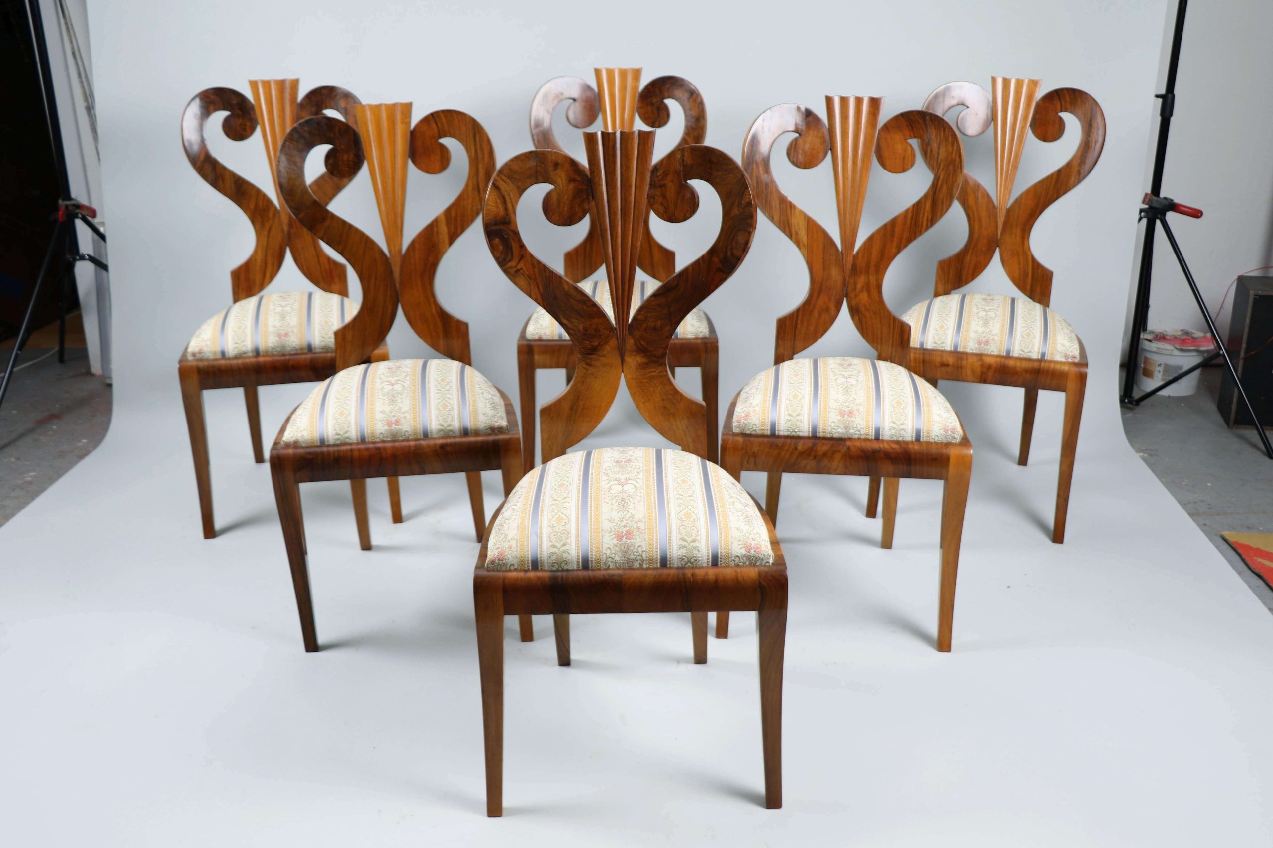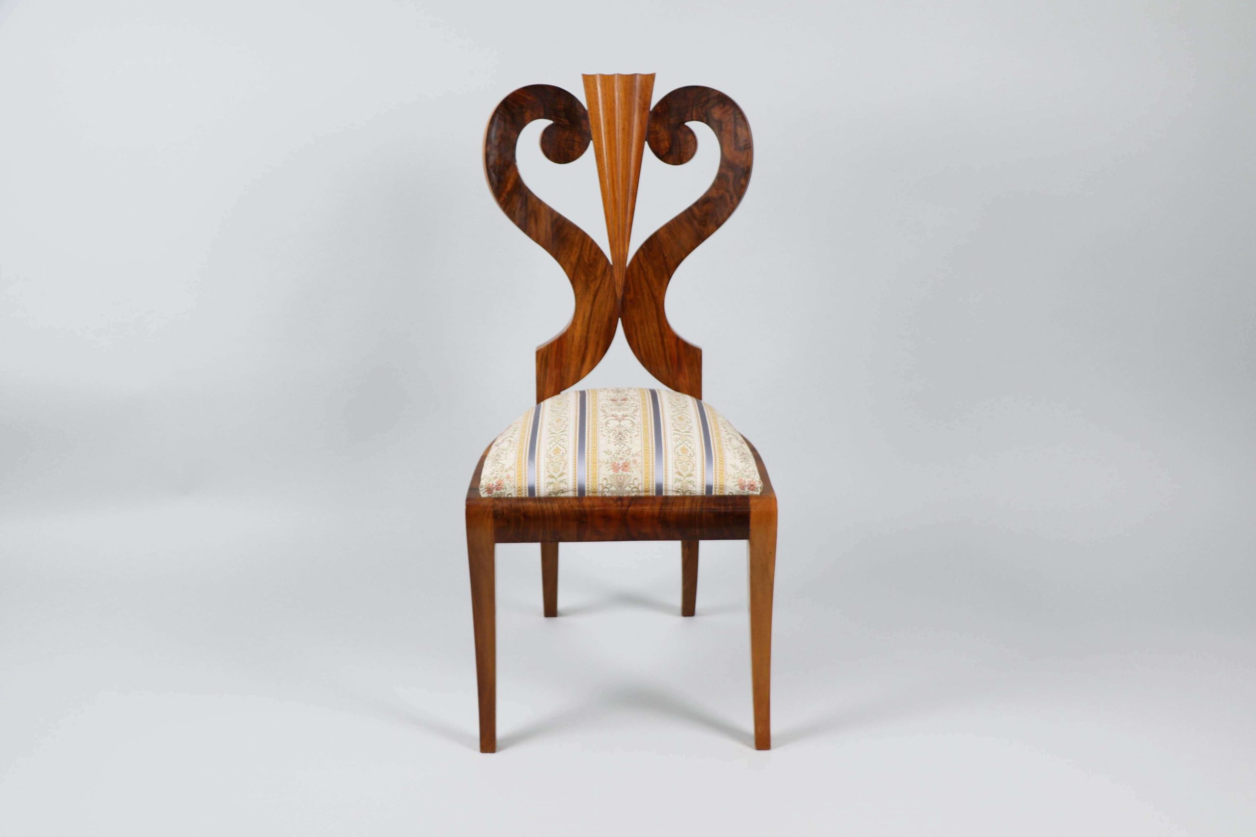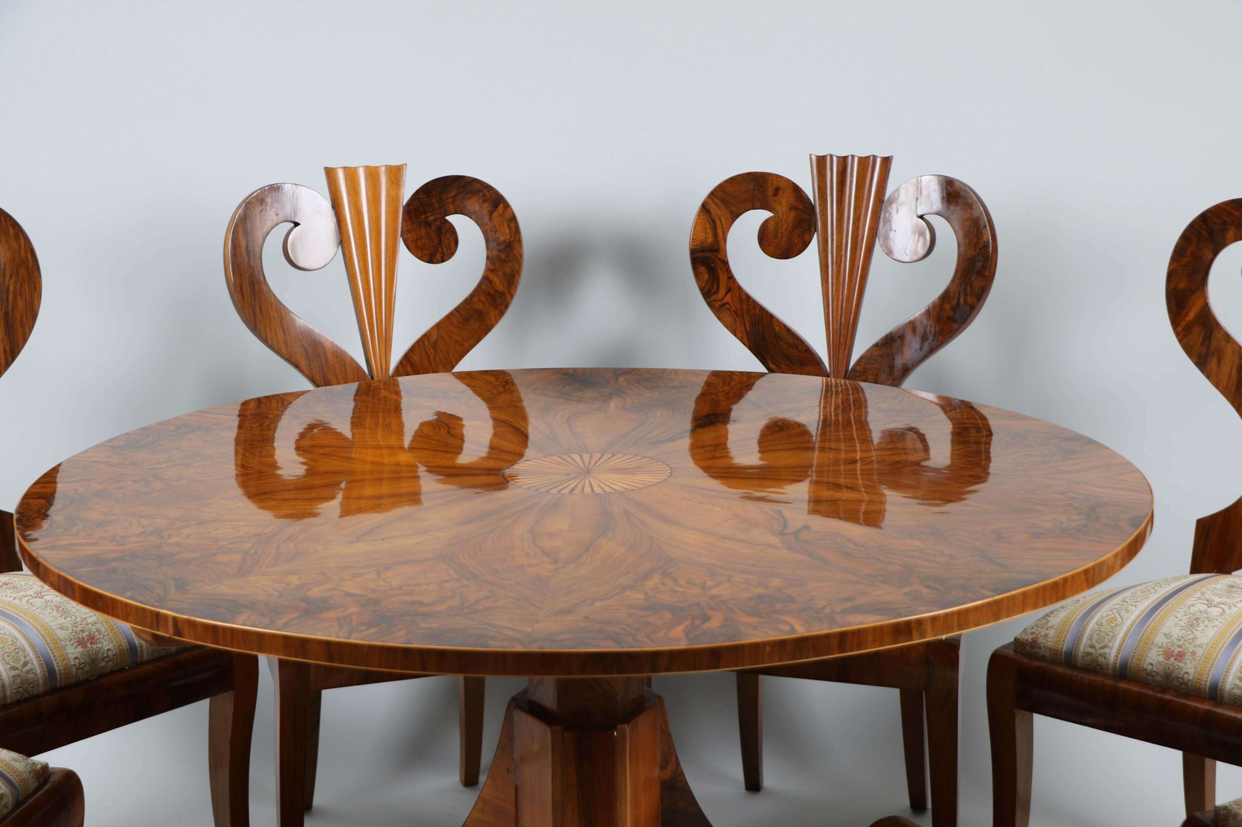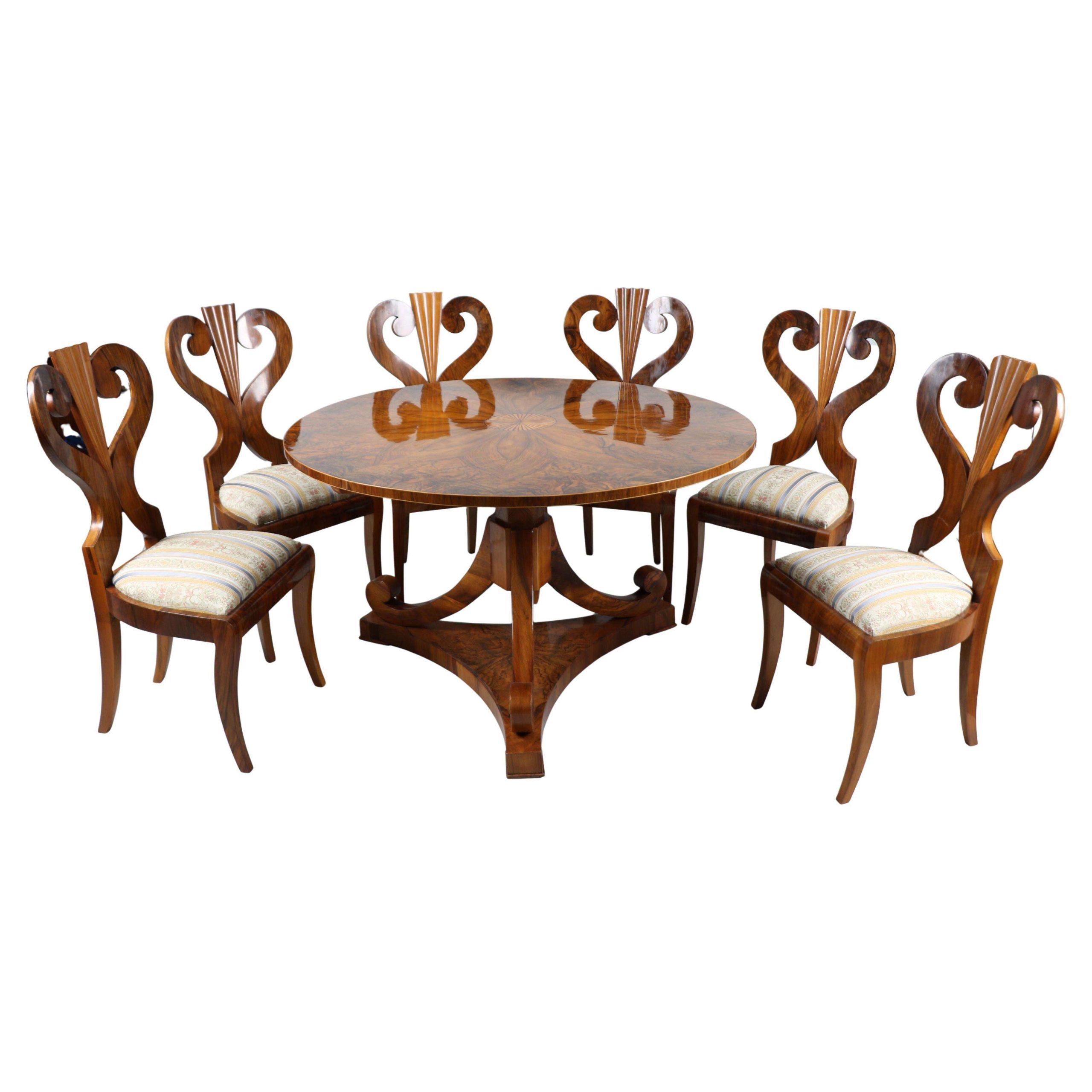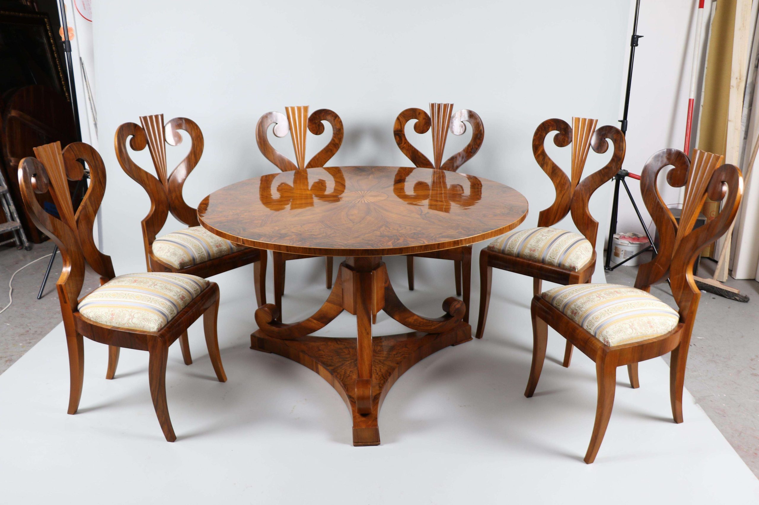 19th Century Fine Biedermeier Walnut Set of Six Chairs & Table, Vienna, c. 1825