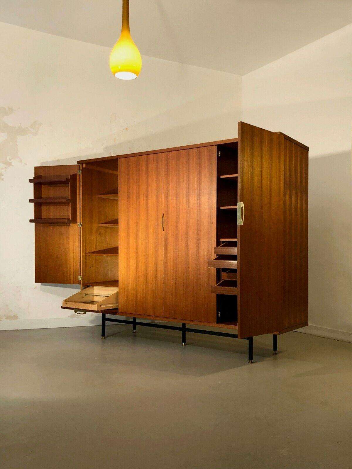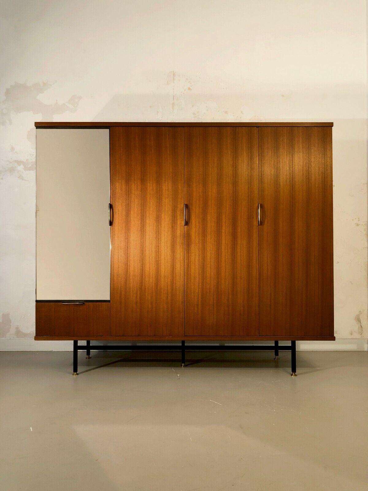 In good condition with minor wear, this piece reflects Motte’s modernist approach during the Reconstruction era, blending functionality with elegant design. A celebrated French designer, Motte’s work for Charron showcases innovative storage solutions and refined aesthetics, making this wardrobe a collector’s item for mid-century modern enthusiasts seeking a practical yet stylish addition to their space, rich with historical design significance.