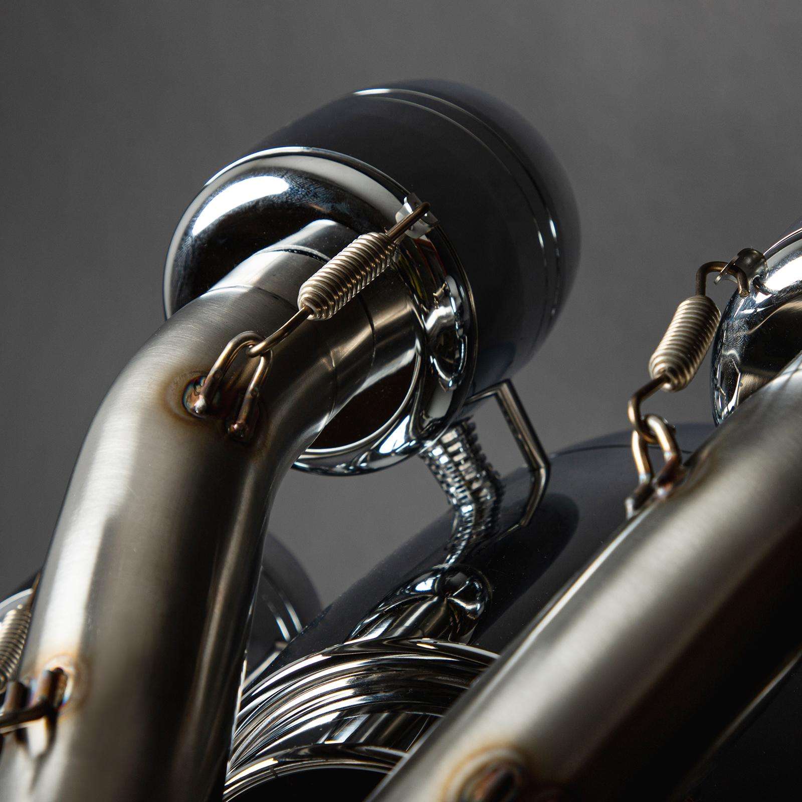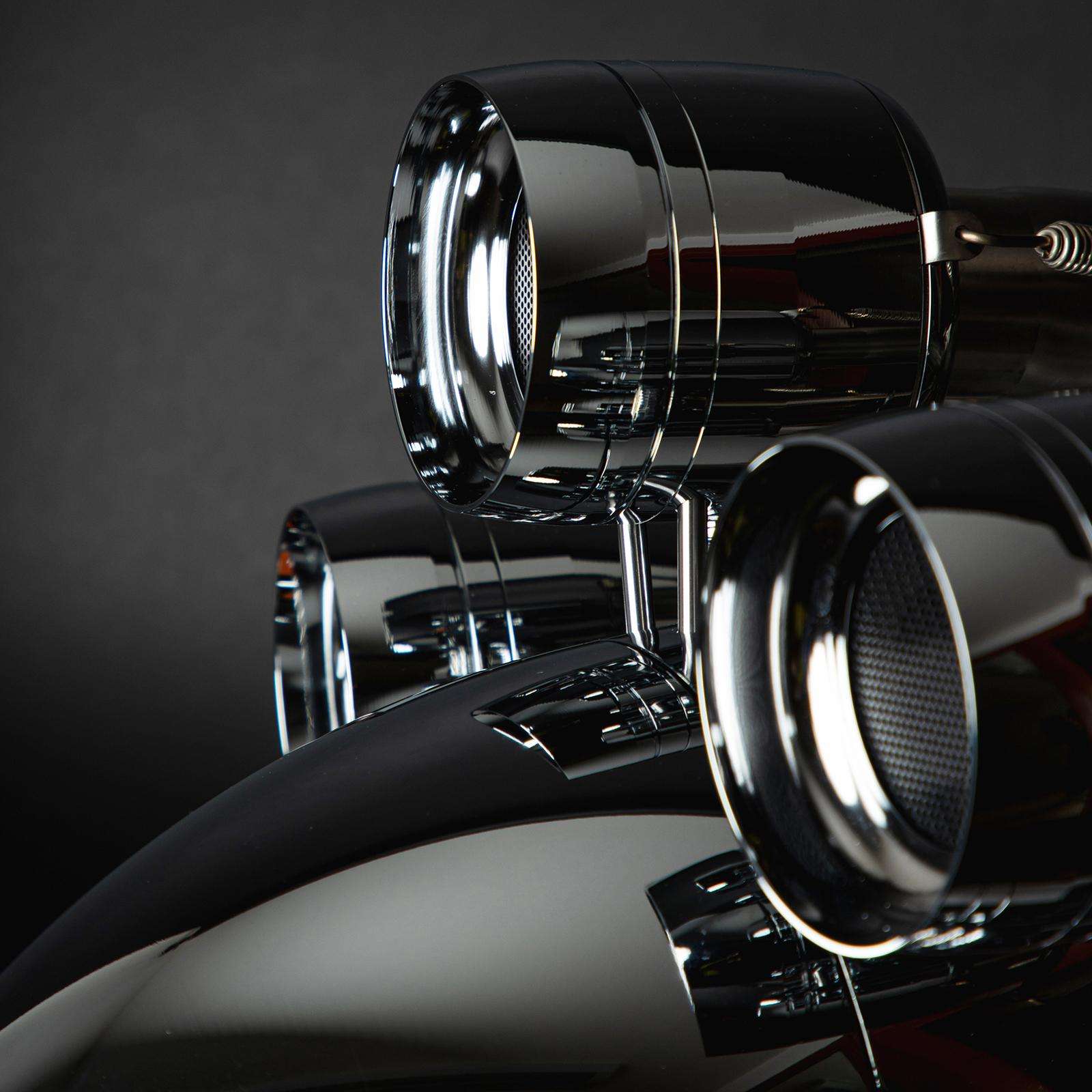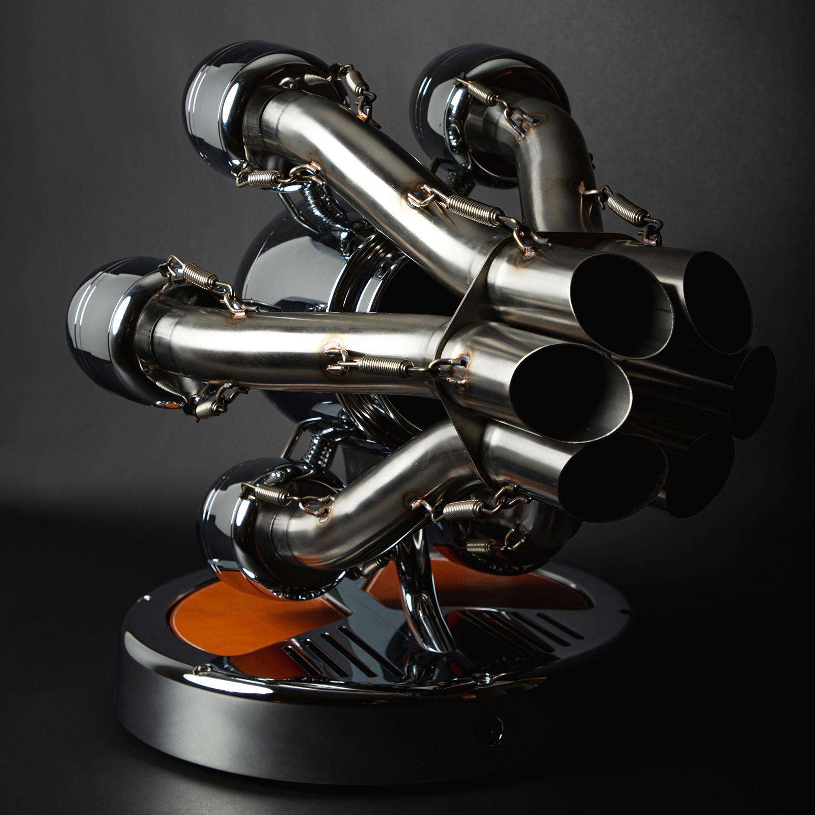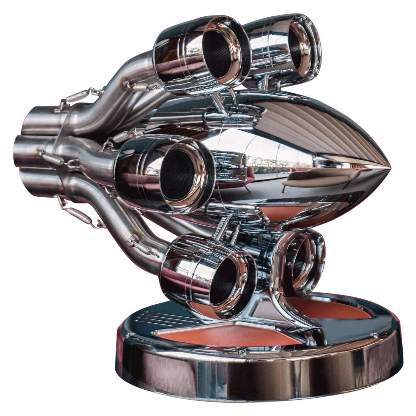 The Aircraft Engine Chrome Speaker draws inspiration from early 20th-century radial aircraft engines, featuring a sleek aluminum alloy structure with chrome details. This hand-crafted piece combines vintage aesthetics with modern audio technology, delivering exceptional sound quality.