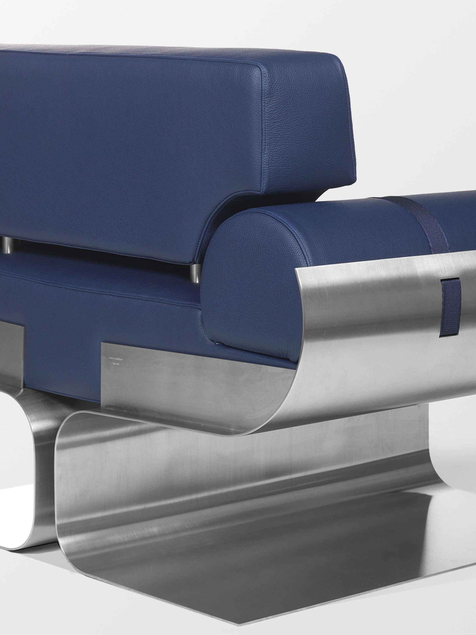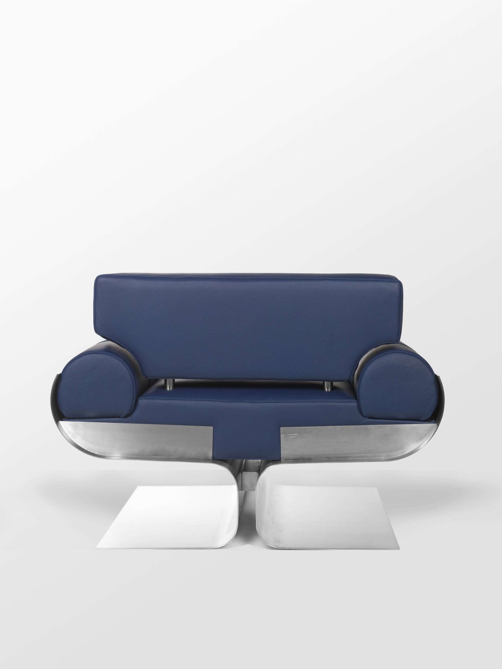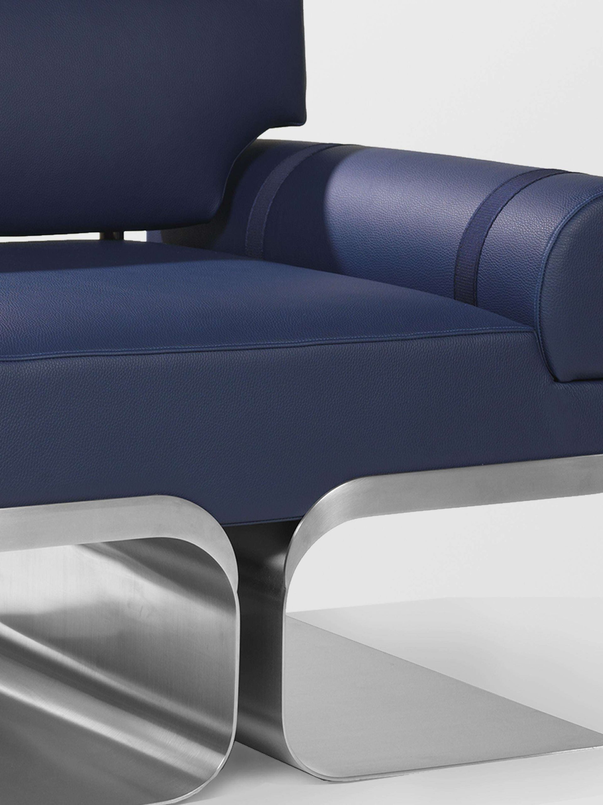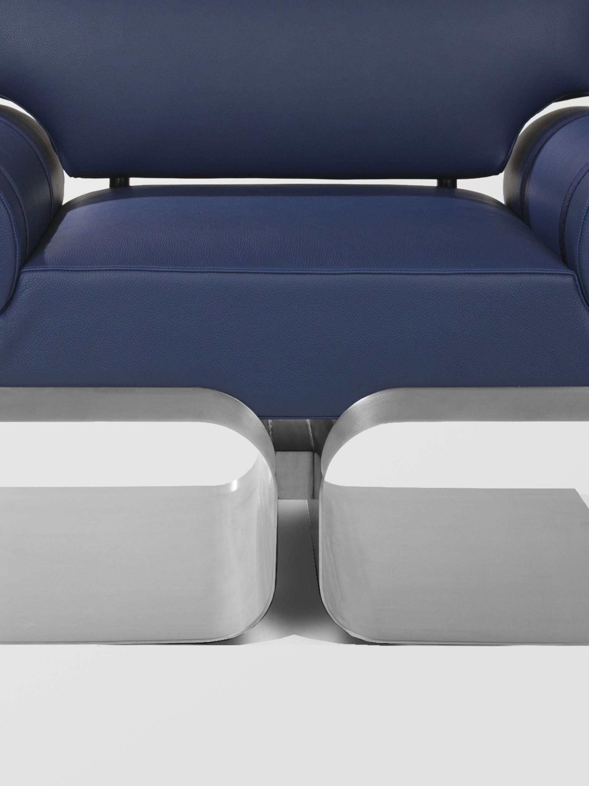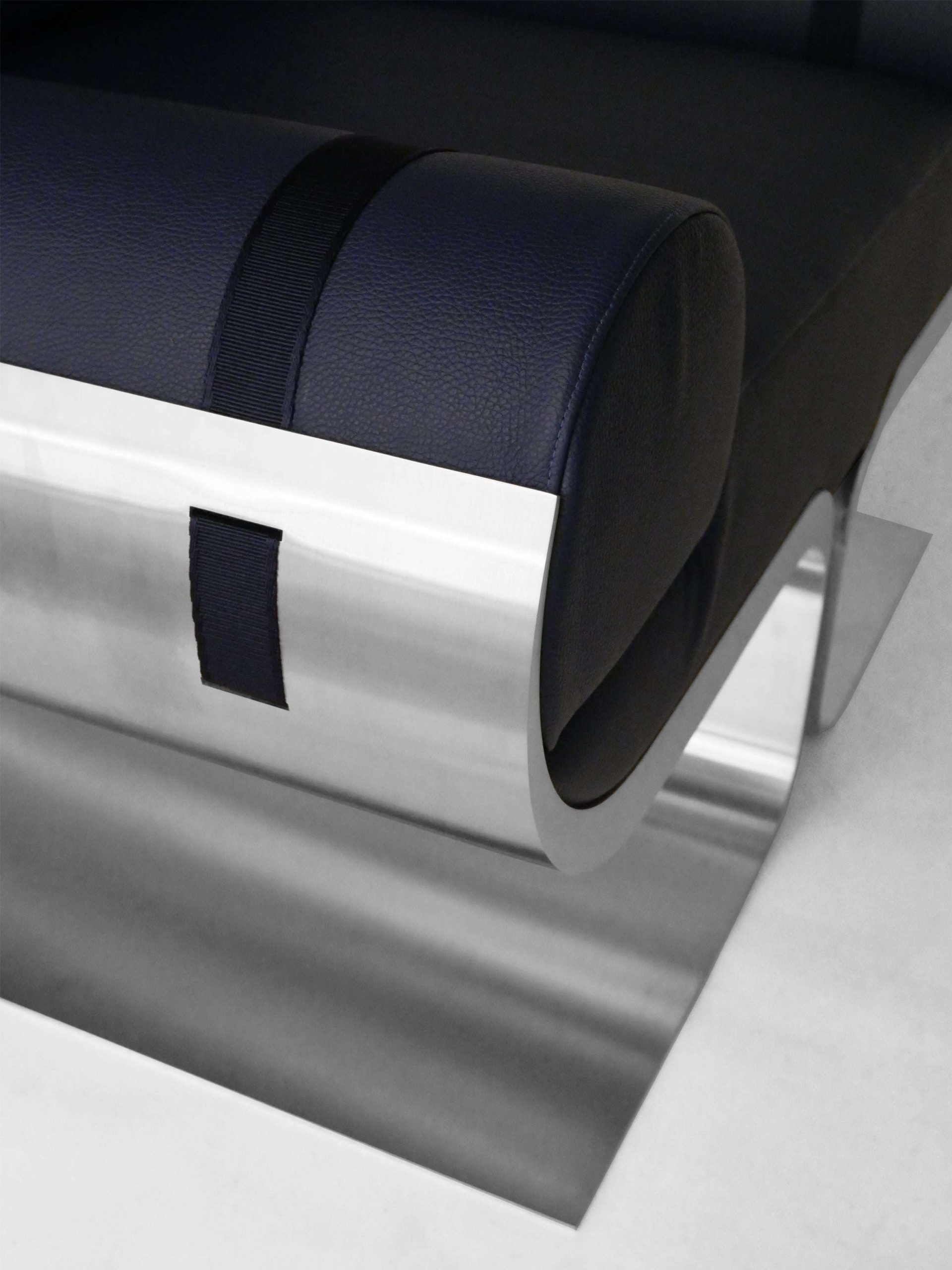 Creator: Dimensions: Height: 29.93 in (76 cm) Width: 43.31 in (110 cm) Depth: 32.68 in (83 cm) Style: Post-Modern (Of the Period) Materials and Techniques: Leather, Stainless Steel, Brushed, Other Place of Origin: Portugal Period: 2010- Date of Manufacture: 2024 Condition: New – Brand-new, unused item, not previously owned. Shows absolutely no signs of wear.