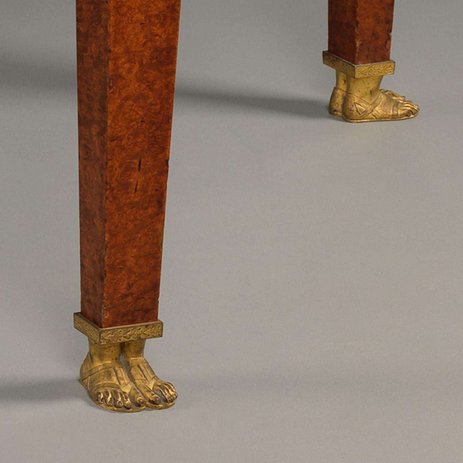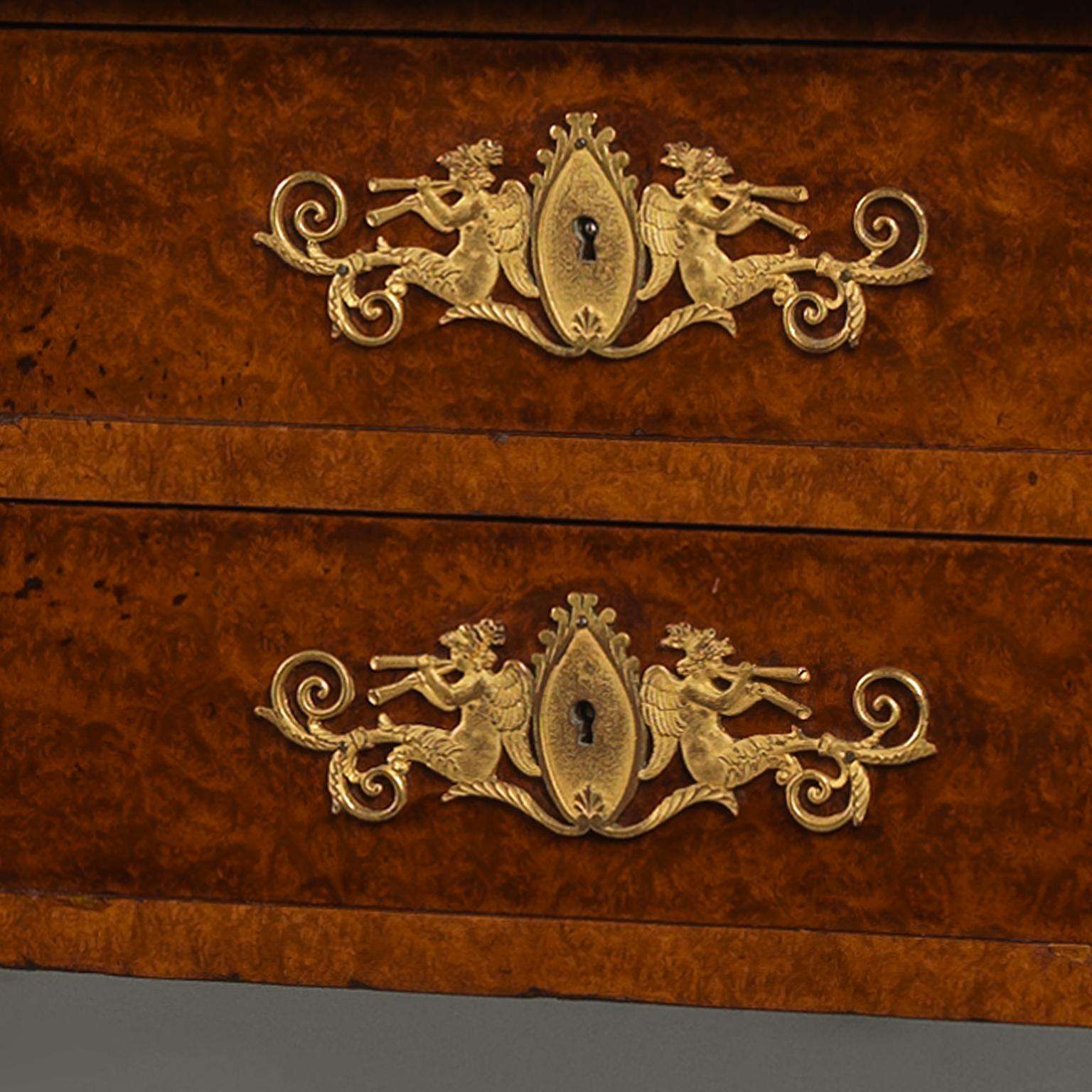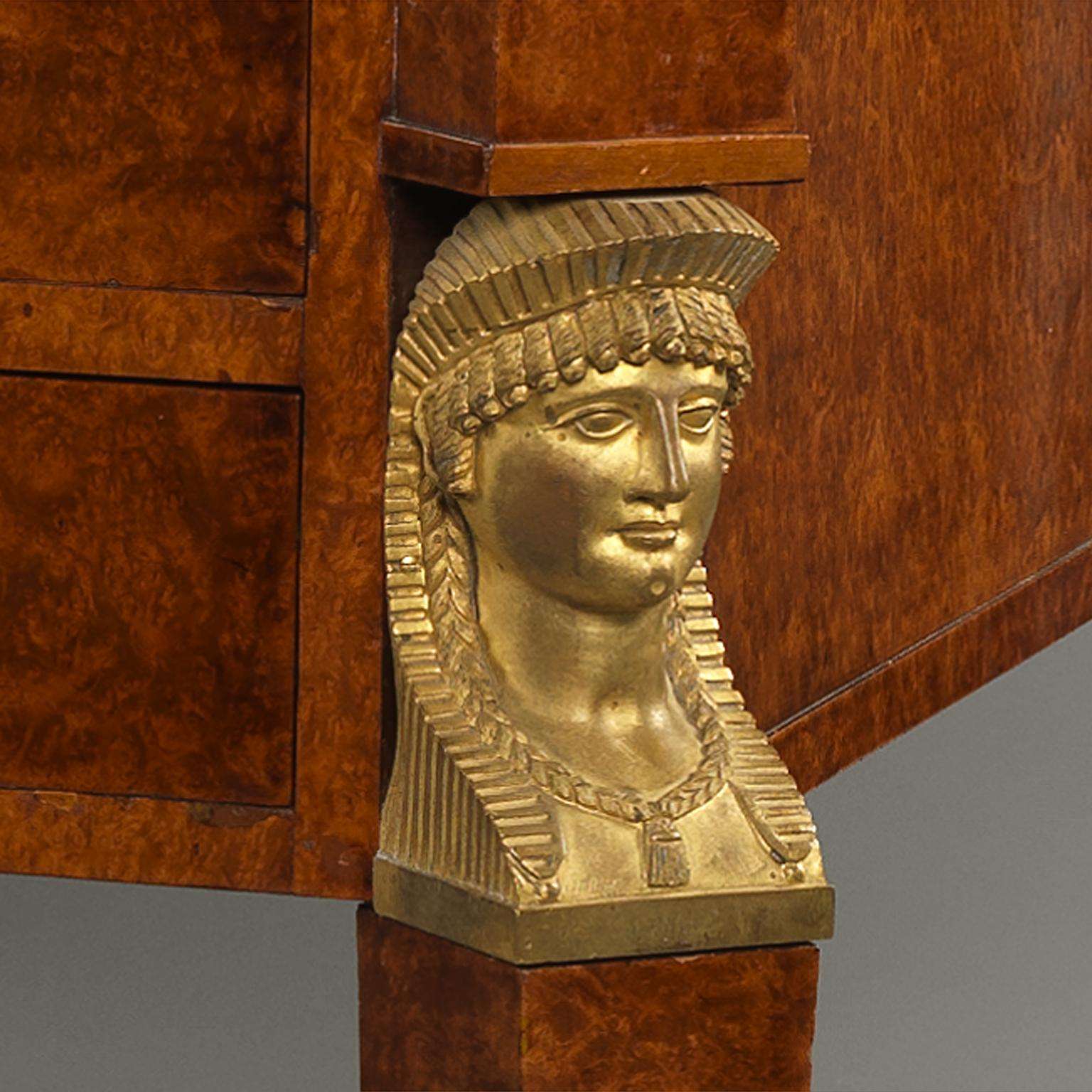 Creator: Maison Forest (Maker) Dimensions: Height: 30.32 in (77 cm) Width: 55.91 in (142 cm) Depth: 33.08 in (84 cm) Style: Empire (In the Style Of) Materials and Techniques: Amboyna, Bronze, Gilt Place of Origin: France Period: Late 19th Century Date of Manufacture: circa 1900 Condition: Good – Lightly used, with very light scratches, or minor cosmetic wear, but has no structural issues. Most antique and vintage items fit this condition.