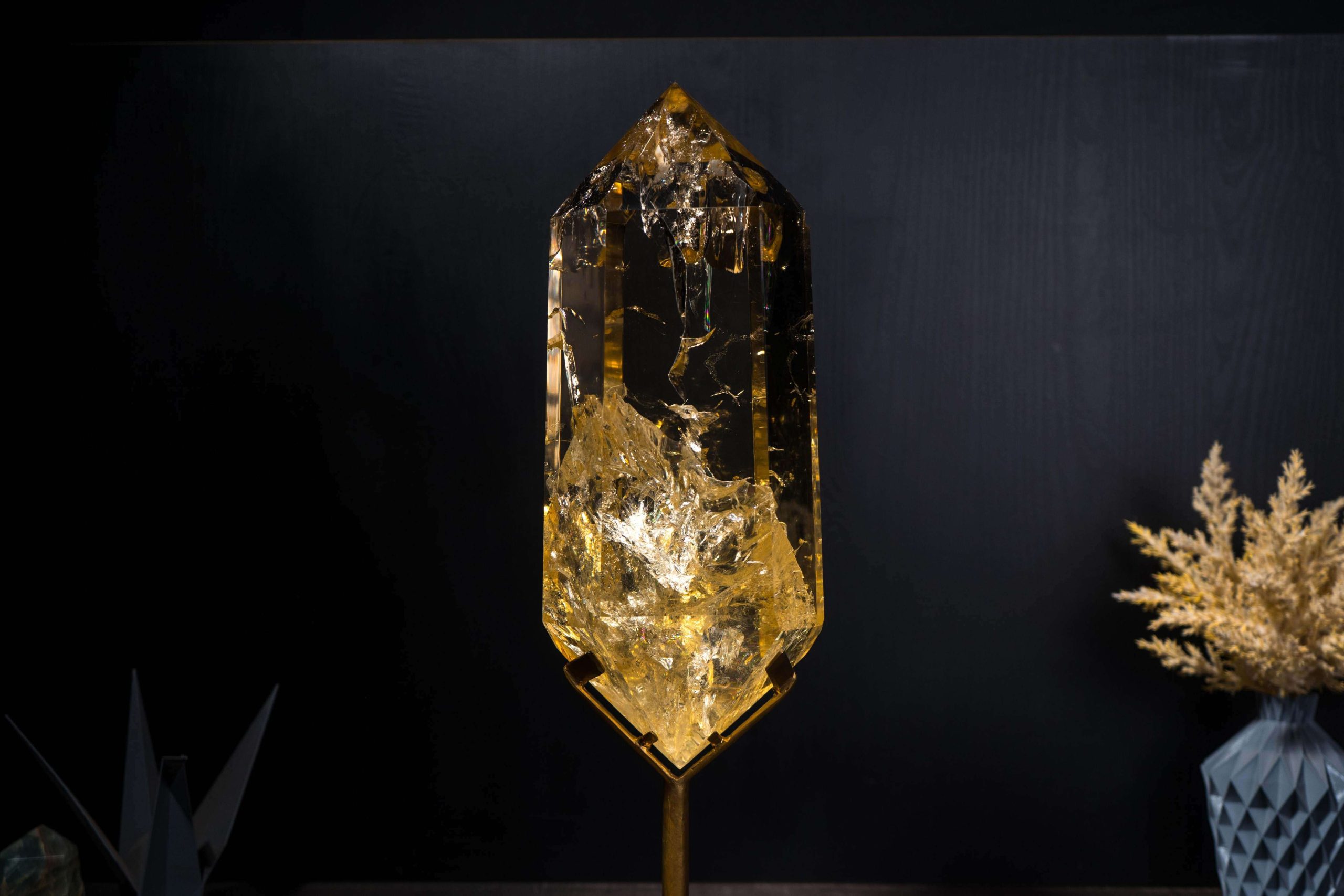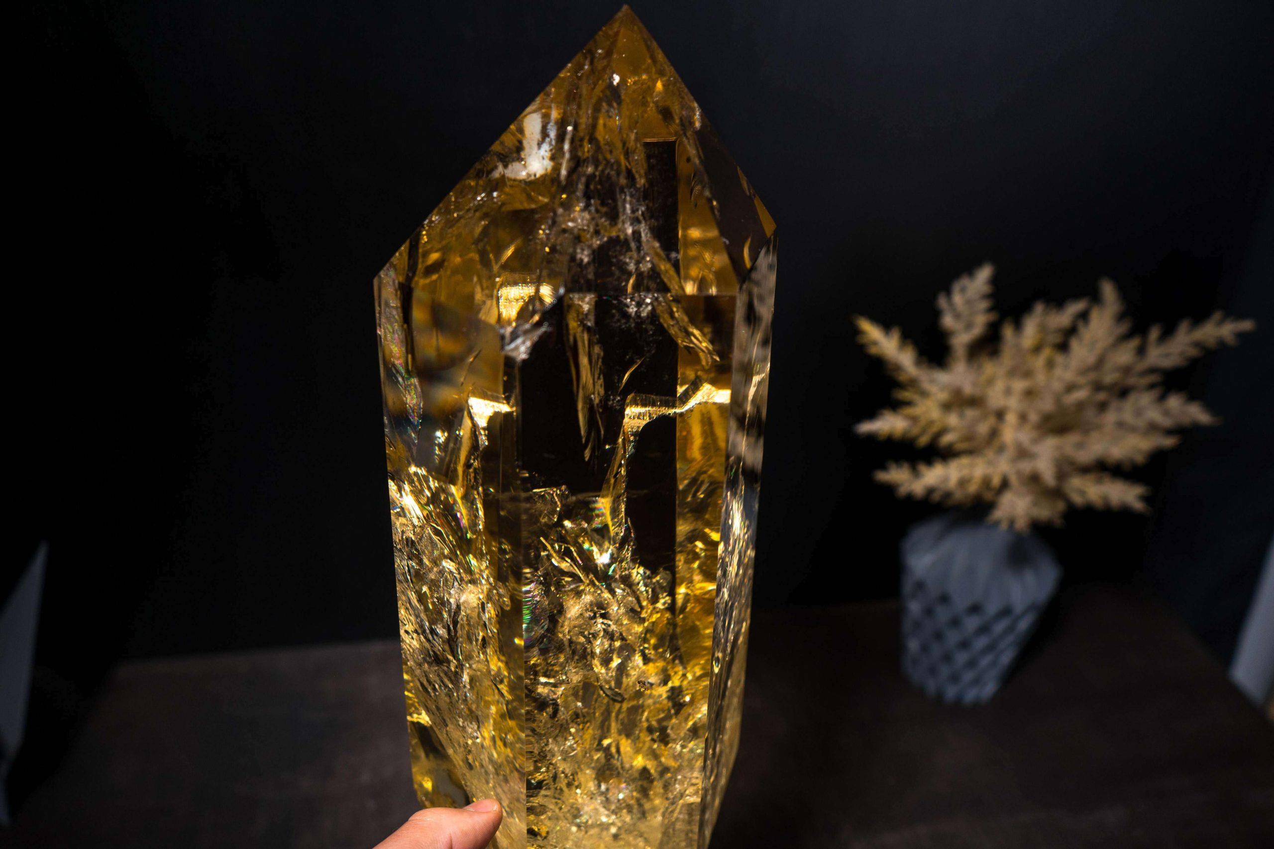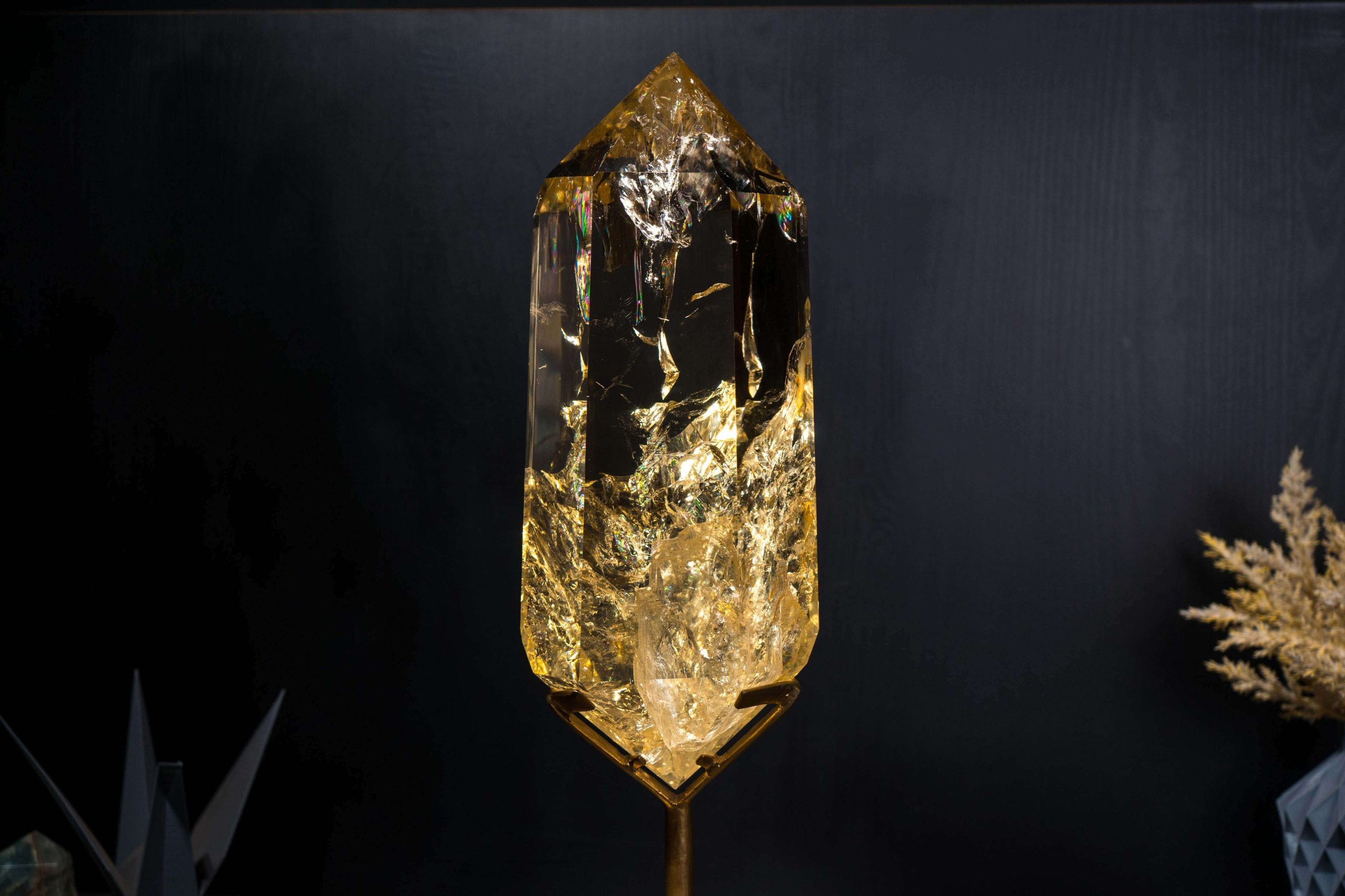 The Epic AAA-Grade Yellow Citrine from Brazil is a rare natural masterpiece, showcasing unmatched beauty and gem-quality clarity with a stunning light yellow hue. This large, water-clear quartz crystal, sourced from Araçuaí, Bahia, is perfect as a collector’s centerpiece or a fine art element for interior décor.
