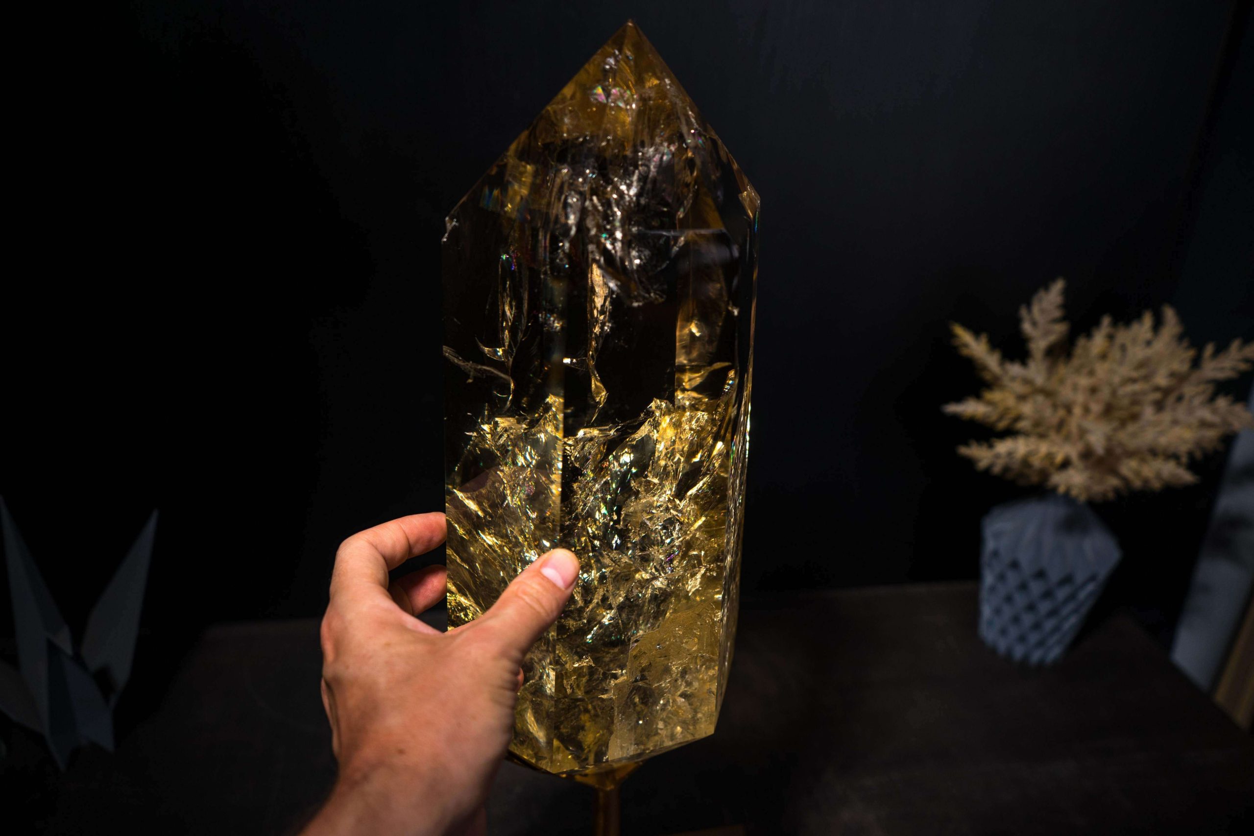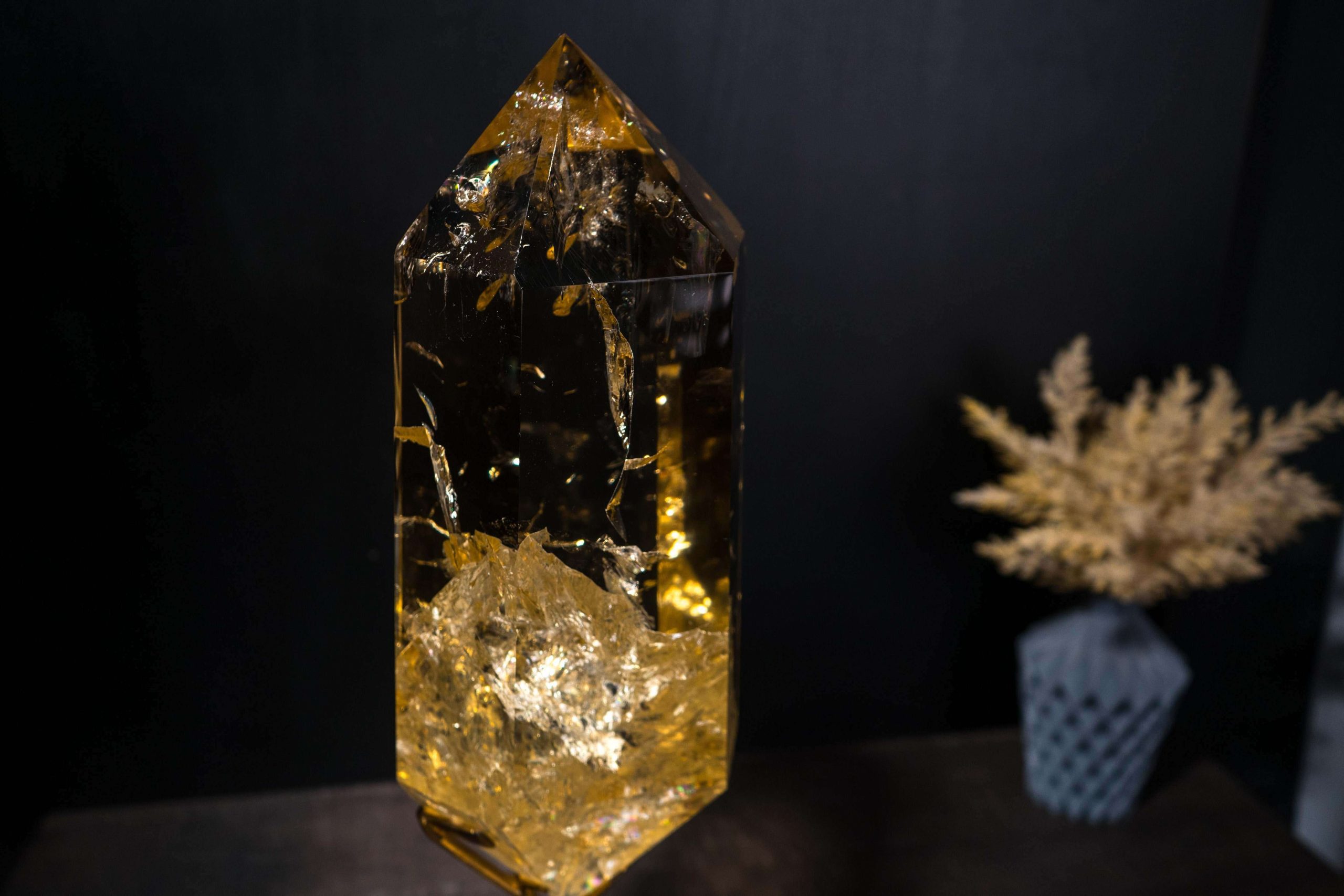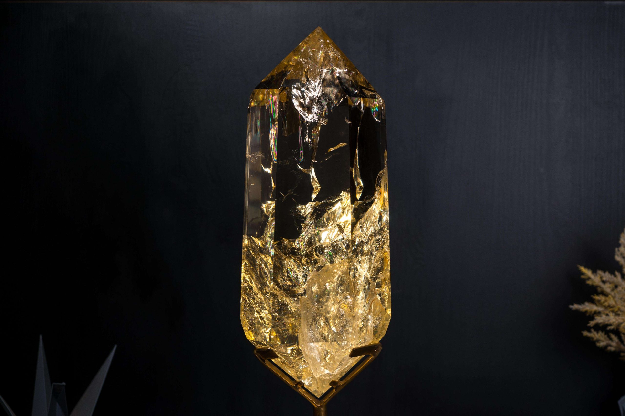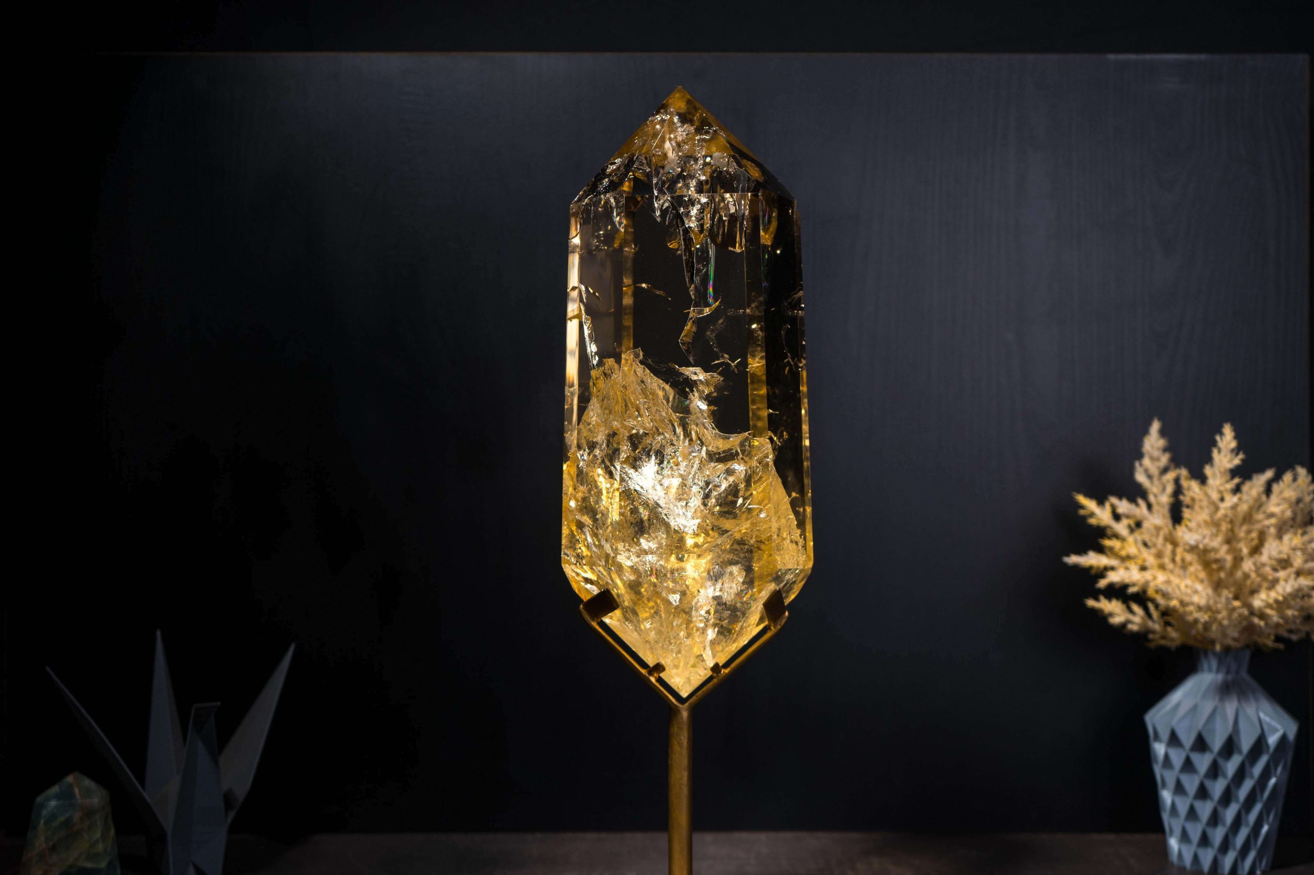 The Epic AAA-Grade Yellow Citrine from Brazil is a rare natural masterpiece, showcasing unmatched beauty and gem-quality clarity with a stunning light yellow hue. This large, water-clear quartz crystal, sourced from Araçuaí, Bahia, is perfect as a collector’s centerpiece or a fine art element for interior décor.