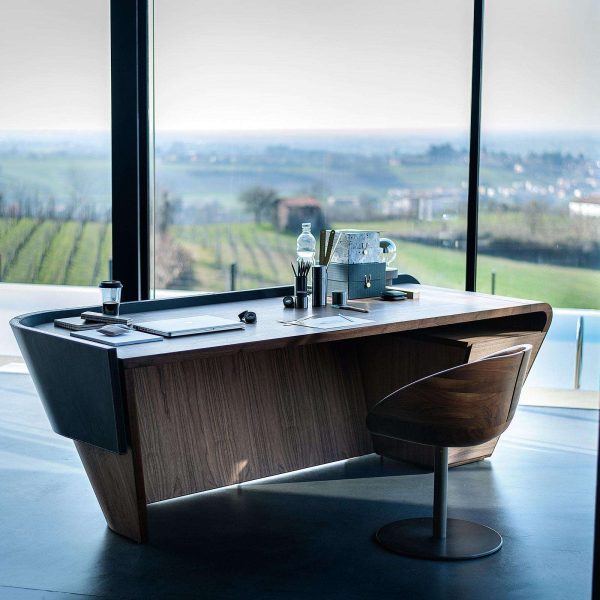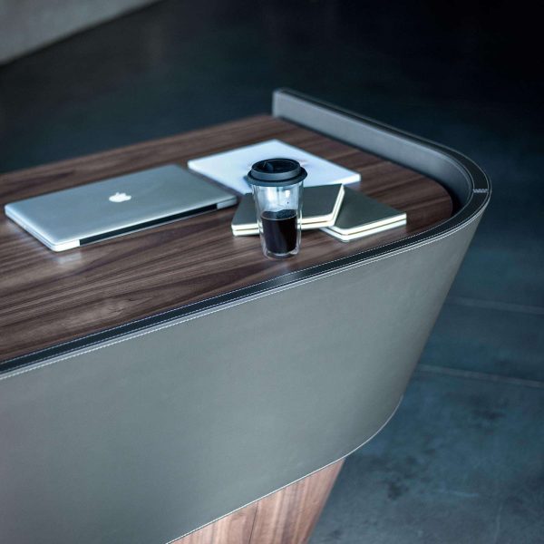 In pristine condition, this desk showcases Rashid’s innovative vision, combining wood and leather with meticulous craftsmanship. Perfect for contemporary interiors, it offers a spacious work surface and storage, enhancing the space with its elegant curves and hand-crafted details, ideal for those seeking a stylish, functional piece that elevates any professional or personal environment with timeless appeal.