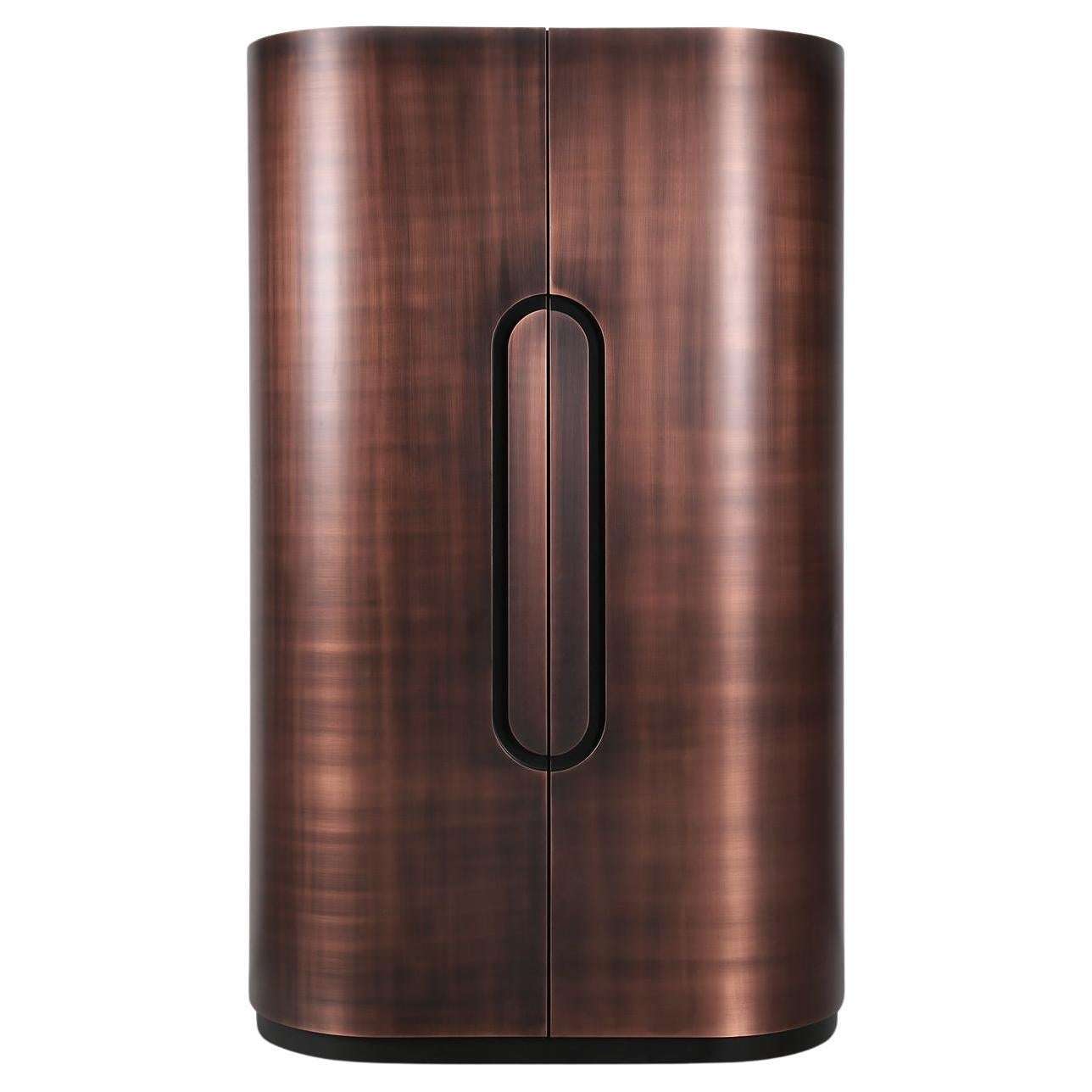 Modern Home Wine Bar Cabinet in Brushed Bronze, Brass, Copper