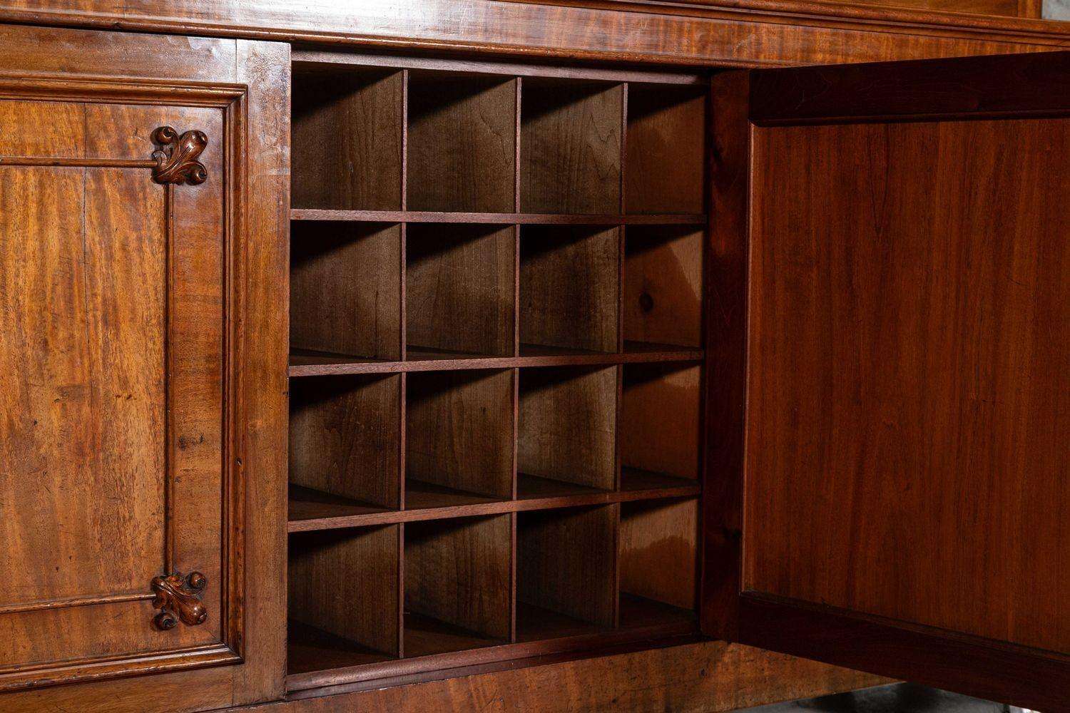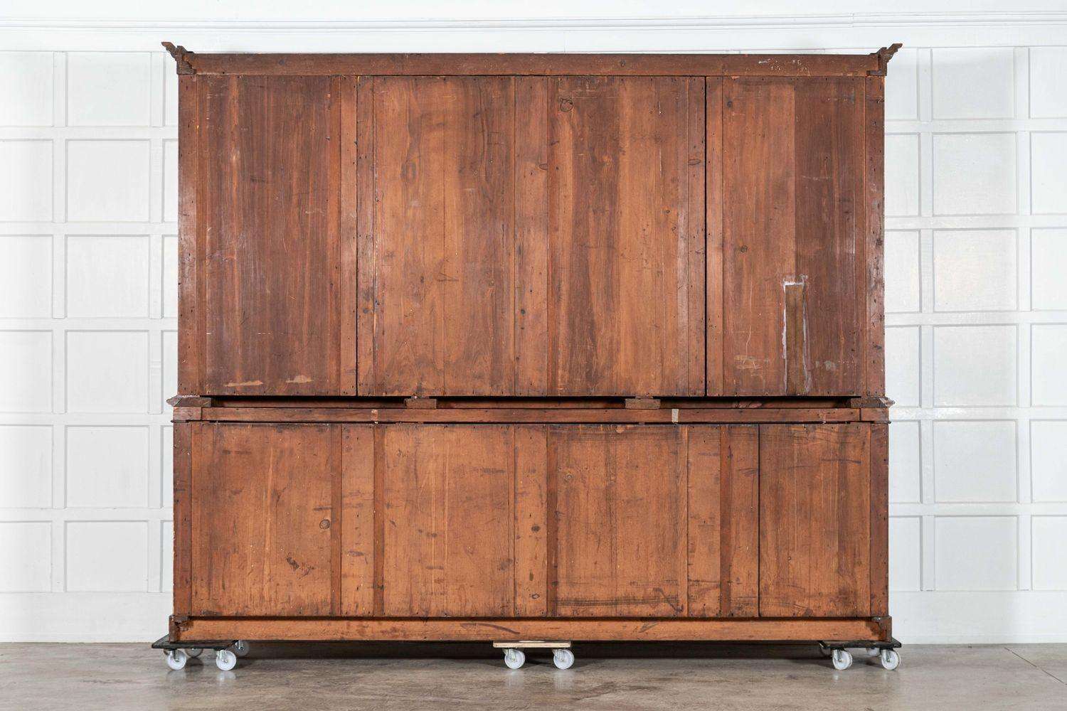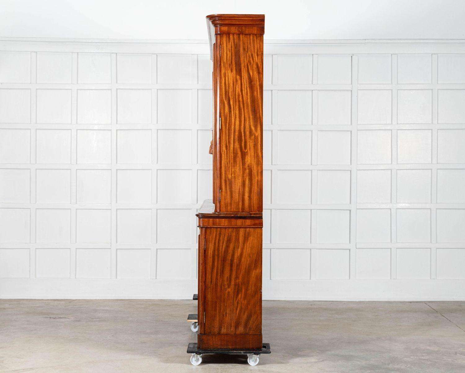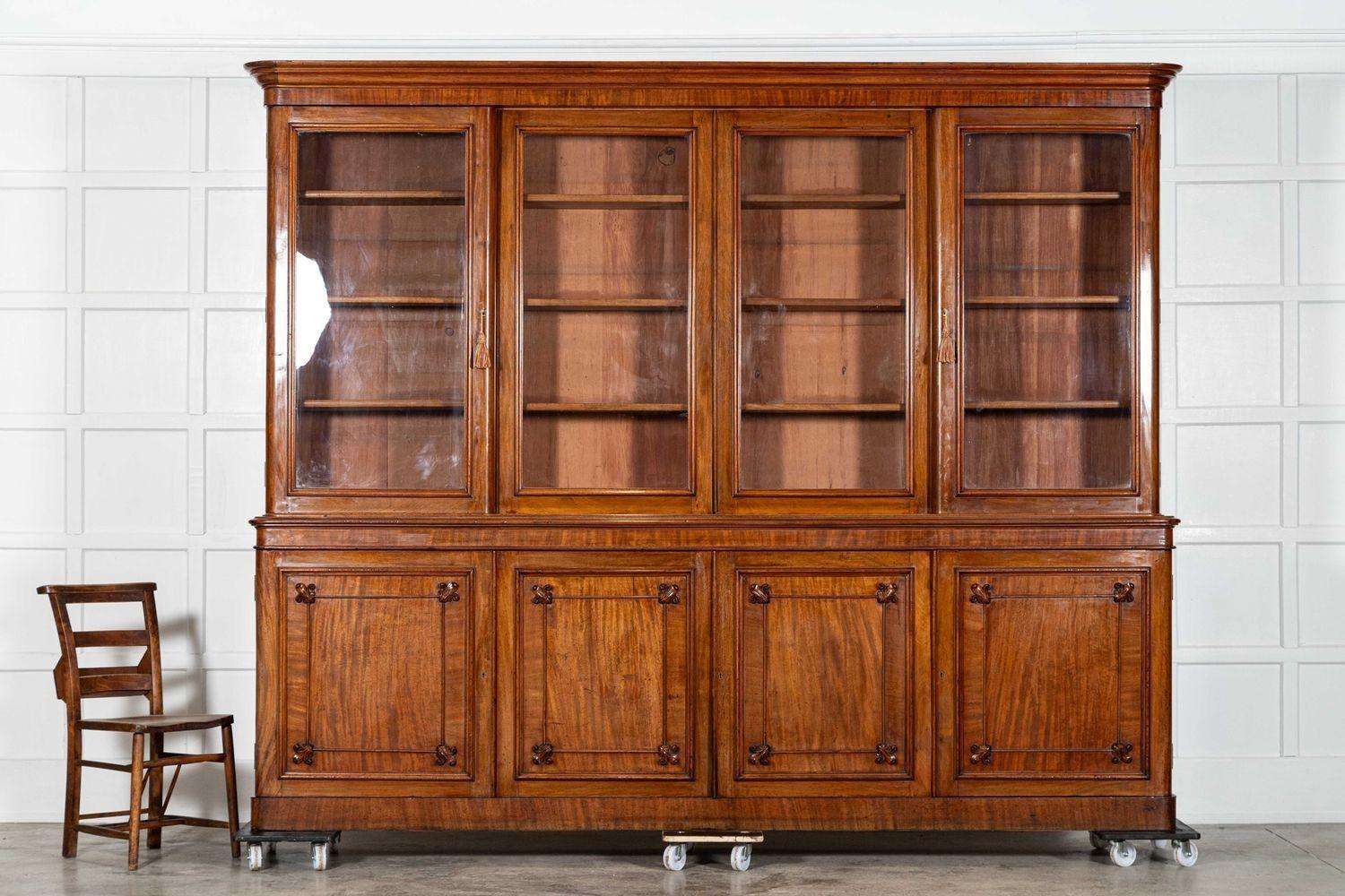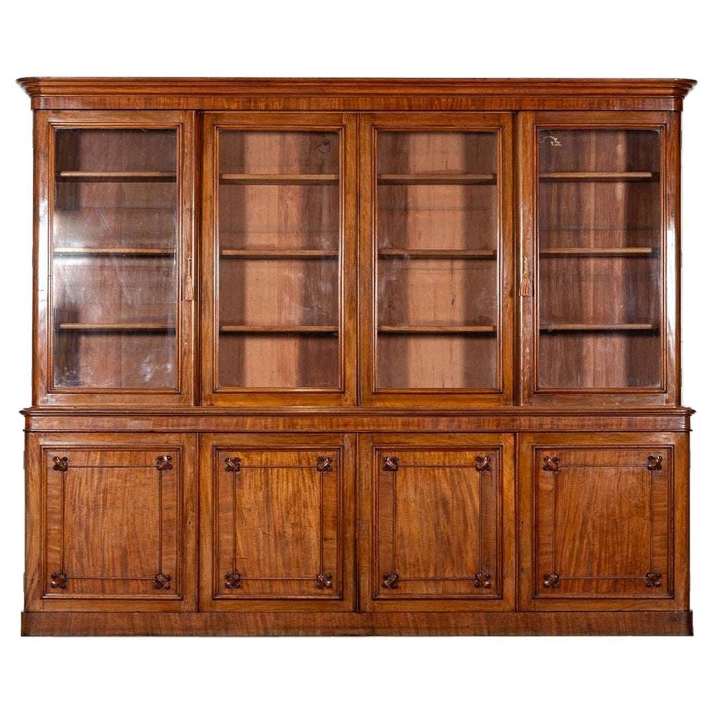 In good condition with minor wear, this bookcase captures the timeless elegance of its era, with its deep patina and monumental scale adding a sense of historical grandeur. Ideal for collectors or those seeking to enhance a modern or classic interior, this piece combines functionality with an impressive architectural presence, serving as a testament to the enduring beauty of 19th-century English design and craftsmanship.