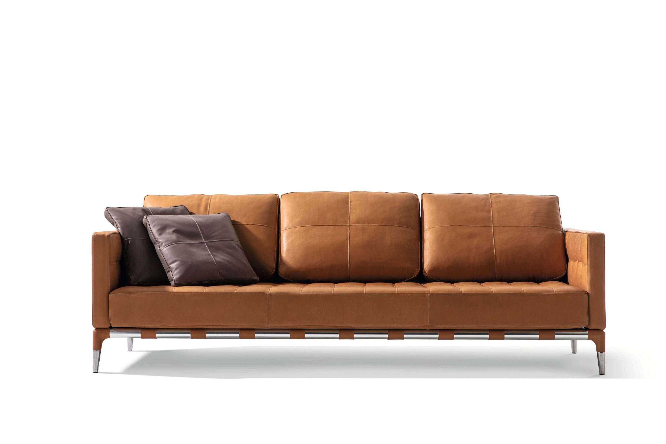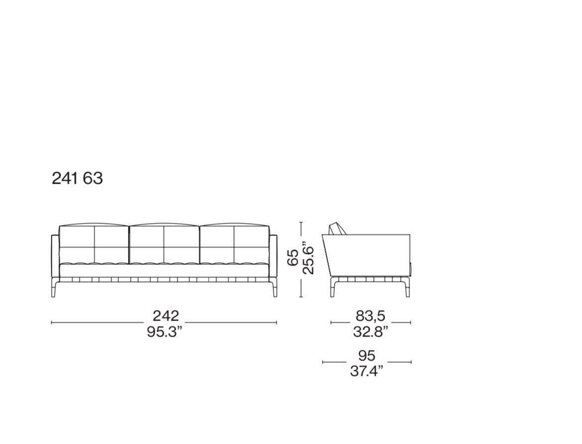 The Prive Steel And Leather Sofa, designed by Philippe Starck for Cassina, Italy, measures 242 cm wide, 95 cm deep, and 65 cm high, offering a sophisticated blend of style and innovation for modern interiors. This three-seater sofa features a complex, formal design with upright supports for the horizontal armrest crafted in polished aluminum, complemented by a base structure with feet made of cast and extruded aluminum. The juxtaposition of materials creates a striking visual contrast, embodying Starck’s philosophy of merging classicism with a playful, transgressive edge, making it a versatile piece for both simple and contemporary settings.