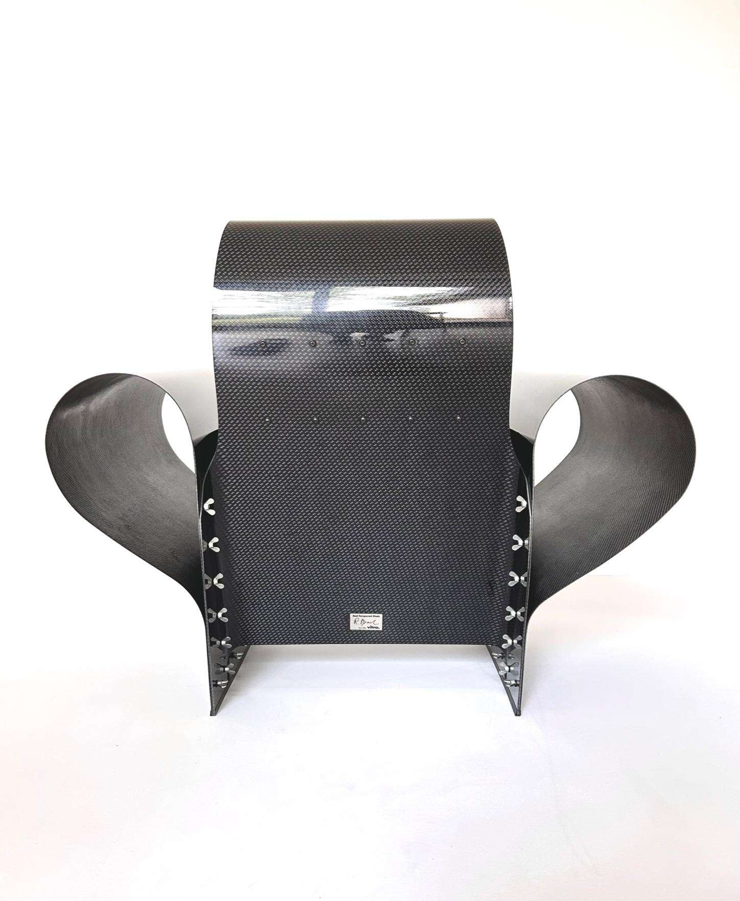 Creator: Ron Arad (Designer), Vitra (Manufacturer) Dimensions: Height: 33 in (83.82 cm) Width: 50 in (127 cm) Depth: 28.5 in (72.39 cm) Seat Height: 20 in (50.8 cm) Style: Post-Modern (Of the Period) Materials and Techniques: Carbon Fiber, Metal Place of Origin: Germany Period: 2000-2009 Date of Manufacture: 2002 Condition: Excellent – Like new or has never been used. Absolutely no scratches or wear. Has no structural issues and is in perfect condition.