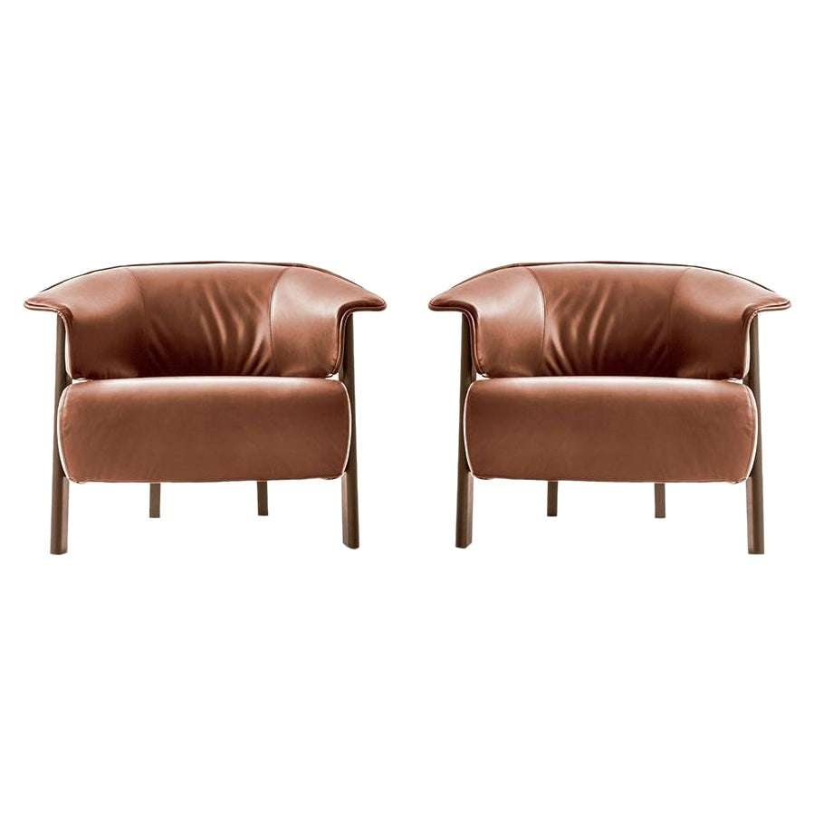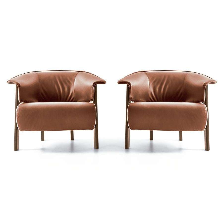 Creator: Patricia Urquiola (Designer), Cassina (Manufacturer) Dimensions: Height: 27.17 in (69 cm) Width: 35.83 in (91 cm) Depth: 28.75 in (73 cm) Seat Height: 16.93 in (43 cm) Sold As: Set of 2 Style: Mid-Century Modern (In the Style Of) Materials and Techniques: Foam, Leather, Wood Place of Origin: Italy Period: 2010- Date of Manufacture: 2024 Condition: New – Brand-new, unused item, not previously owned. Shows absolutely no signs of wear.