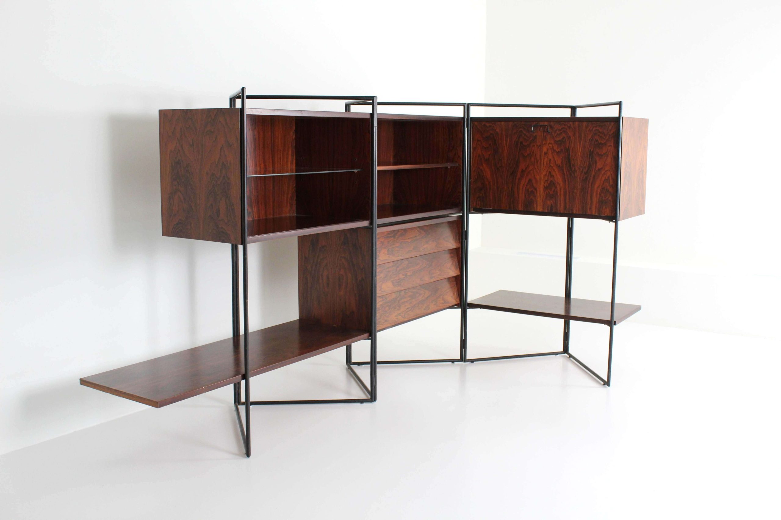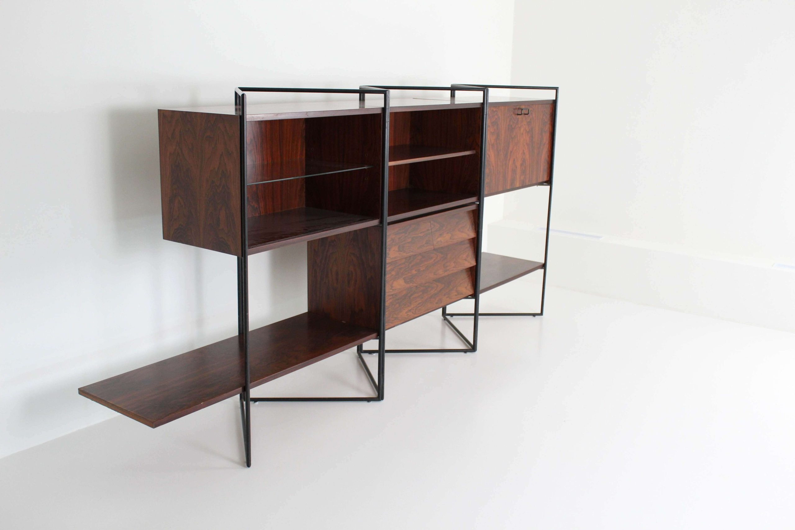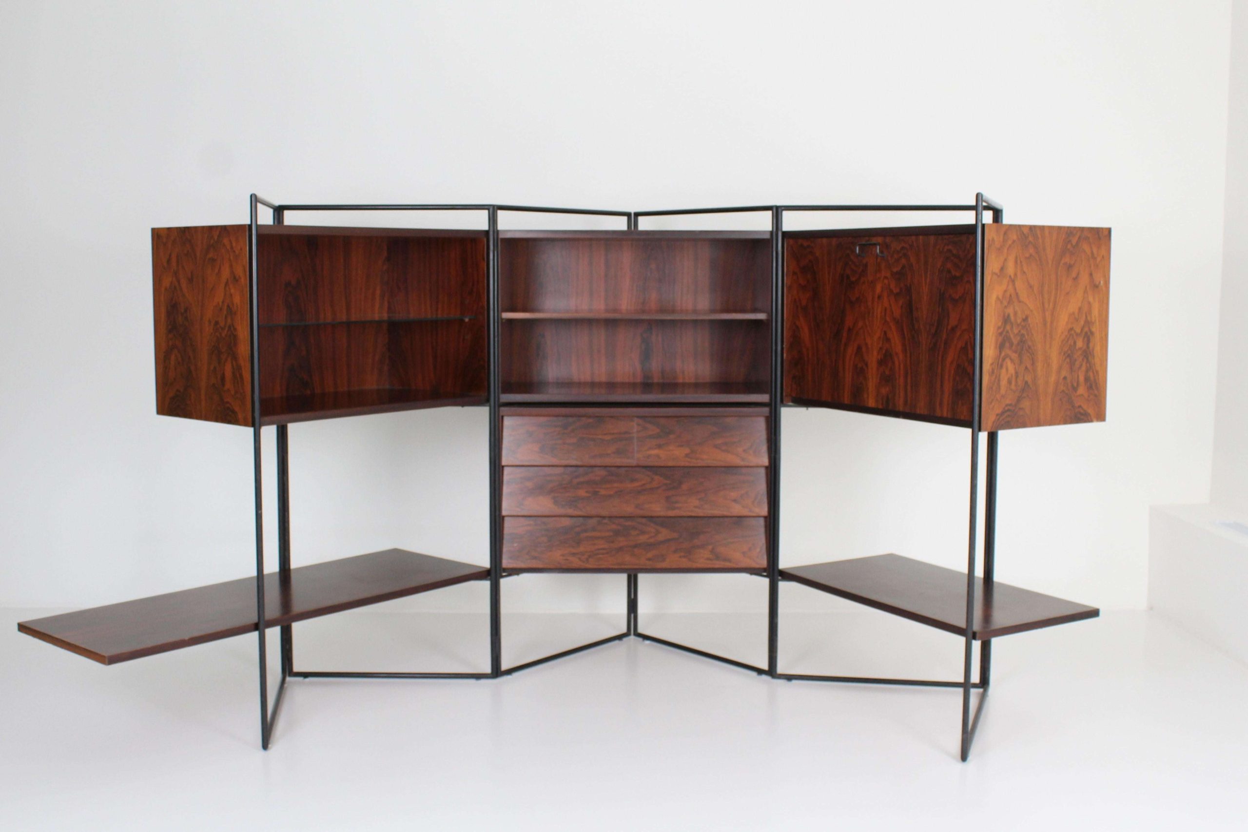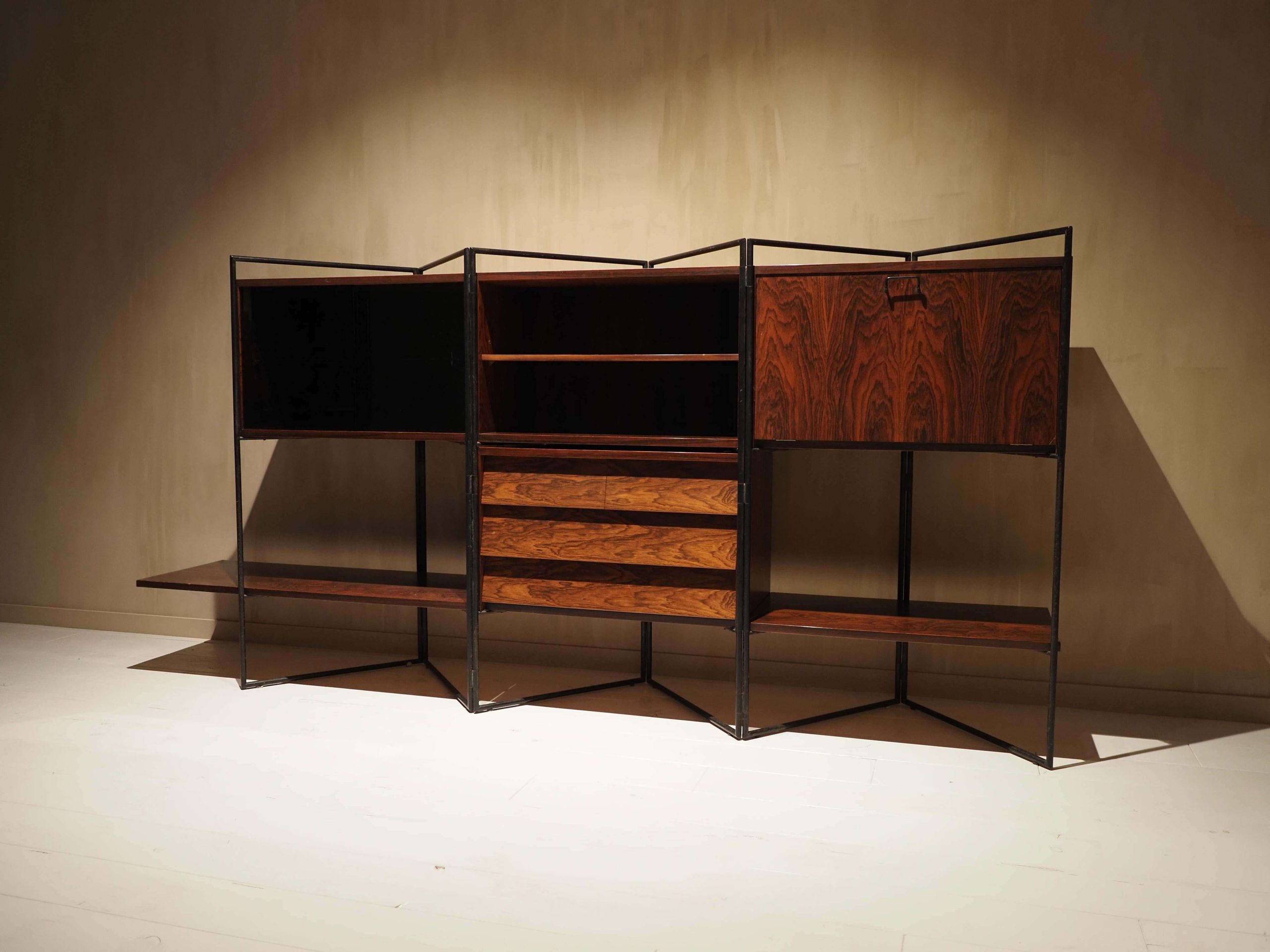 Creator: Taichiro Nakai (Designer) Dimensions: Height: 50.01 in (127 cm) Width: 104.34 in (265 cm) Depth: 16.54 in (42 cm) Style: Mid-Century Modern (Of the Period) Materials and Techniques: Brass, Glass, Iron, Wood Place of Origin: Italy Period: 1950-1959 Date of Manufacture: 1953 Condition: Excellent – Like new or has never been used. Absolutely no scratches or wear. Has no structural issues and is in perfect condition.