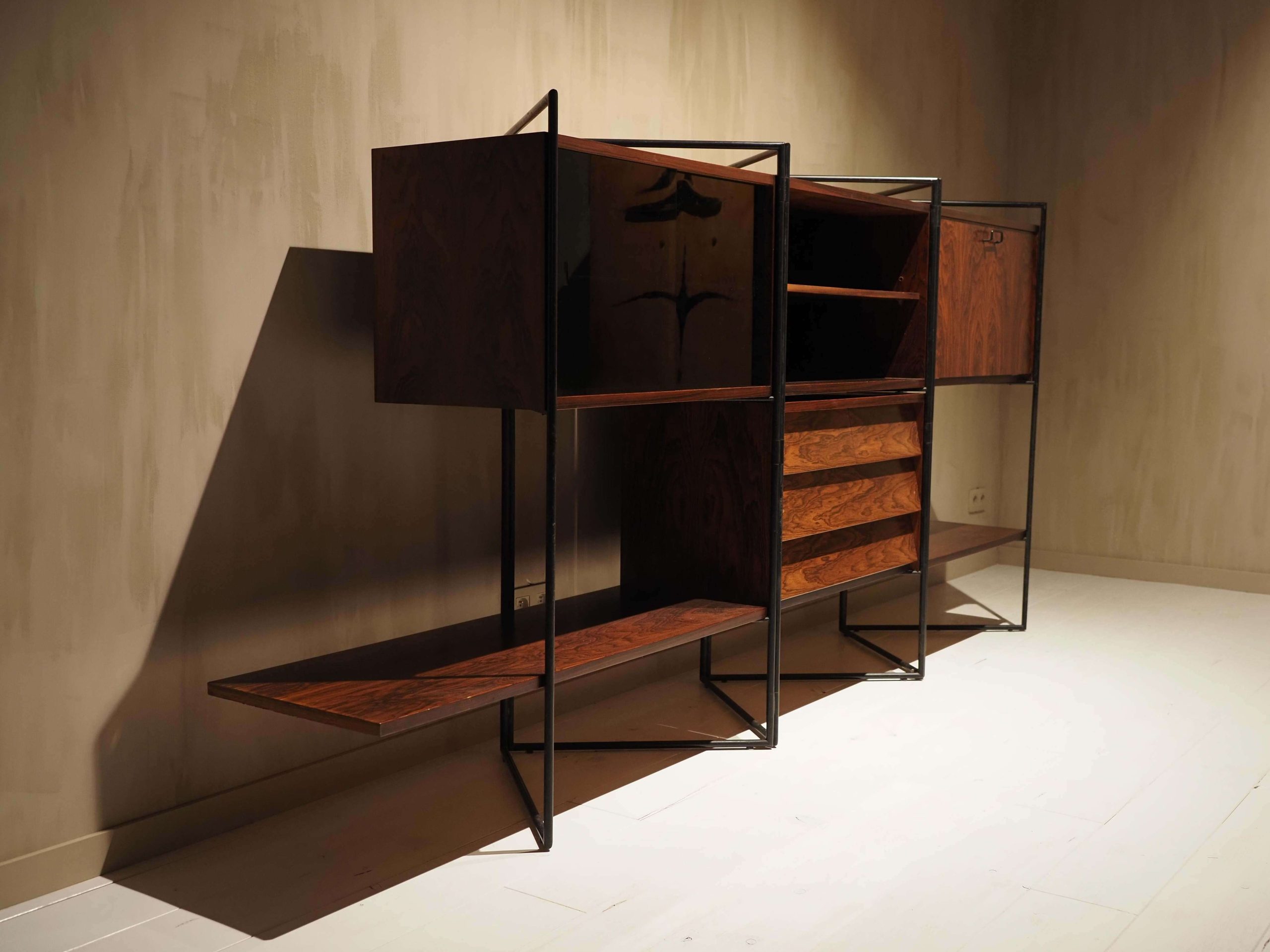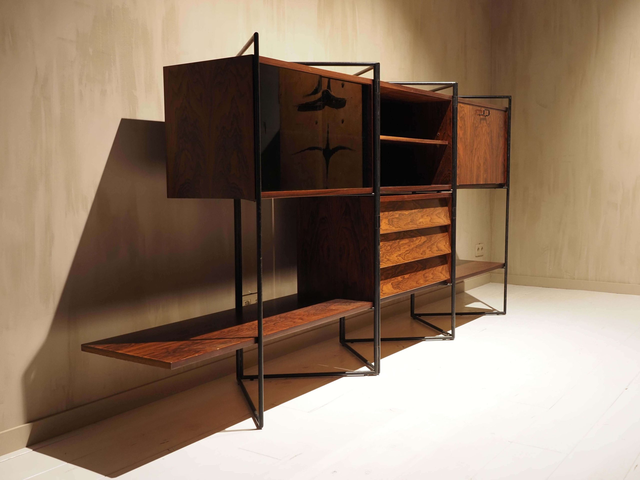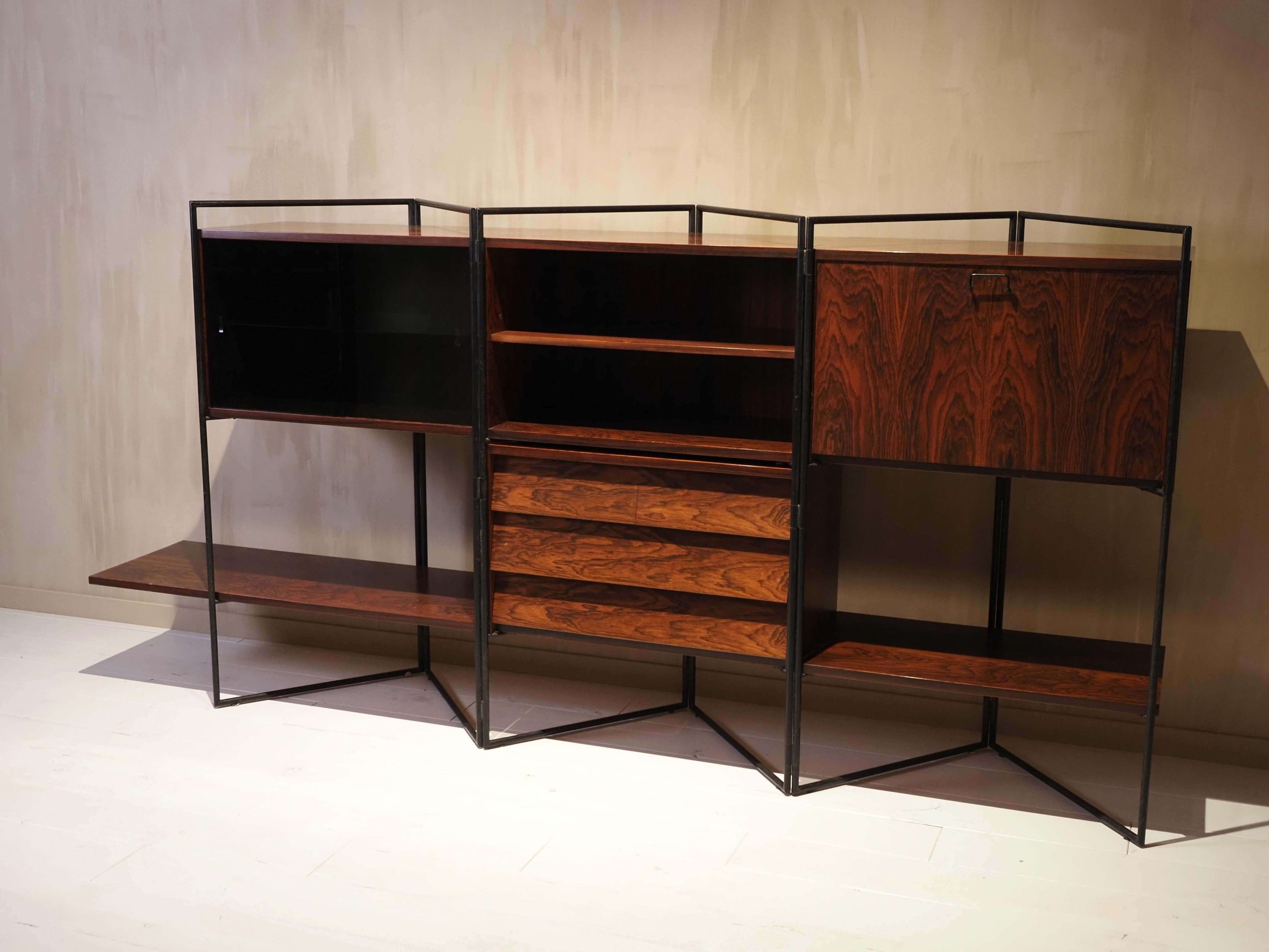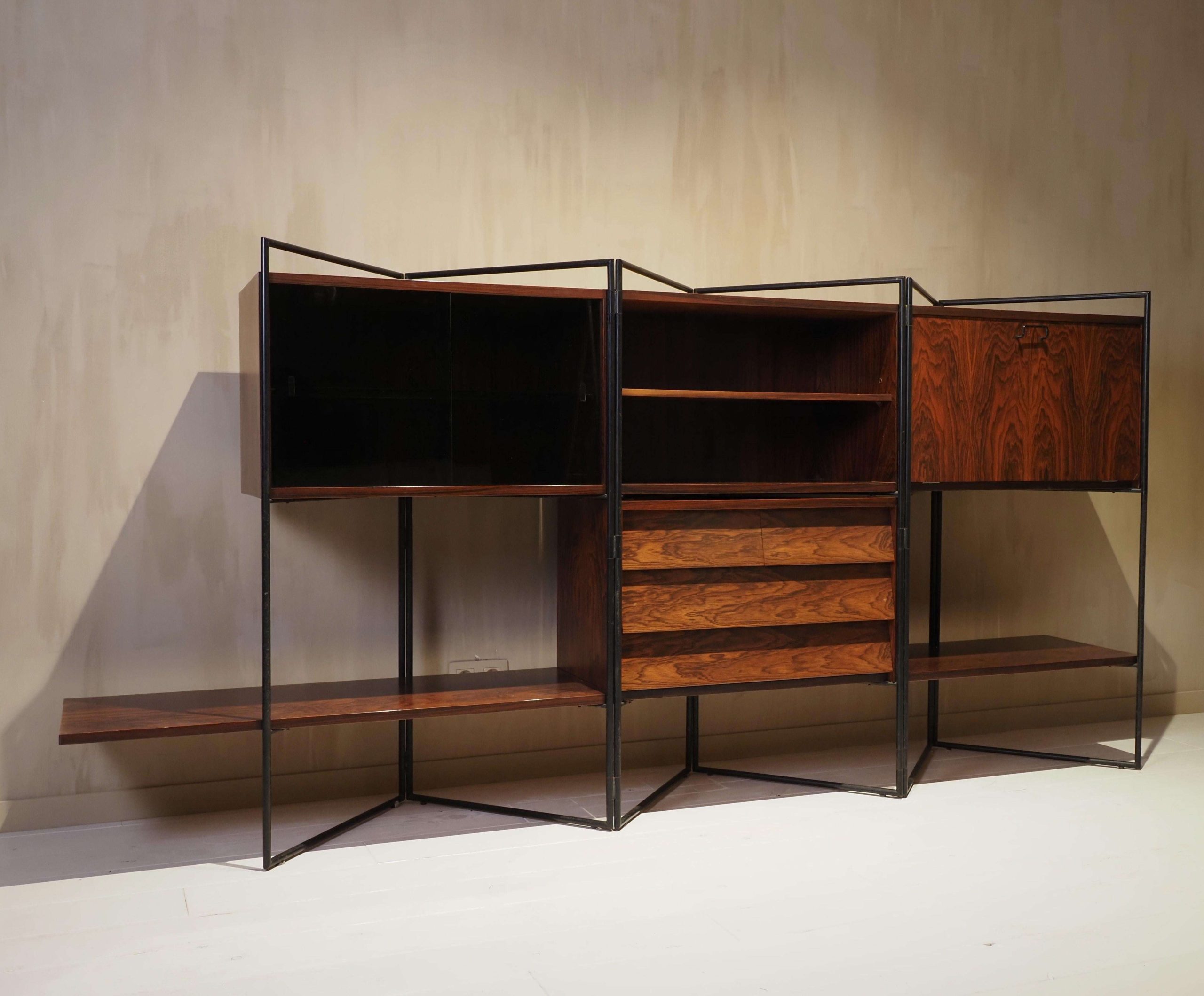 Creator: Taichiro Nakai (Designer) Dimensions: Height: 50.01 in (127 cm) Width: 104.34 in (265 cm) Depth: 16.54 in (42 cm) Style: Mid-Century Modern (Of the Period) Materials and Techniques: Brass, Glass, Iron, Wood Place of Origin: Italy Period: 1950-1959 Date of Manufacture: 1953 Condition: Excellent – Like new or has never been used. Absolutely no scratches or wear. Has no structural issues and is in perfect condition.