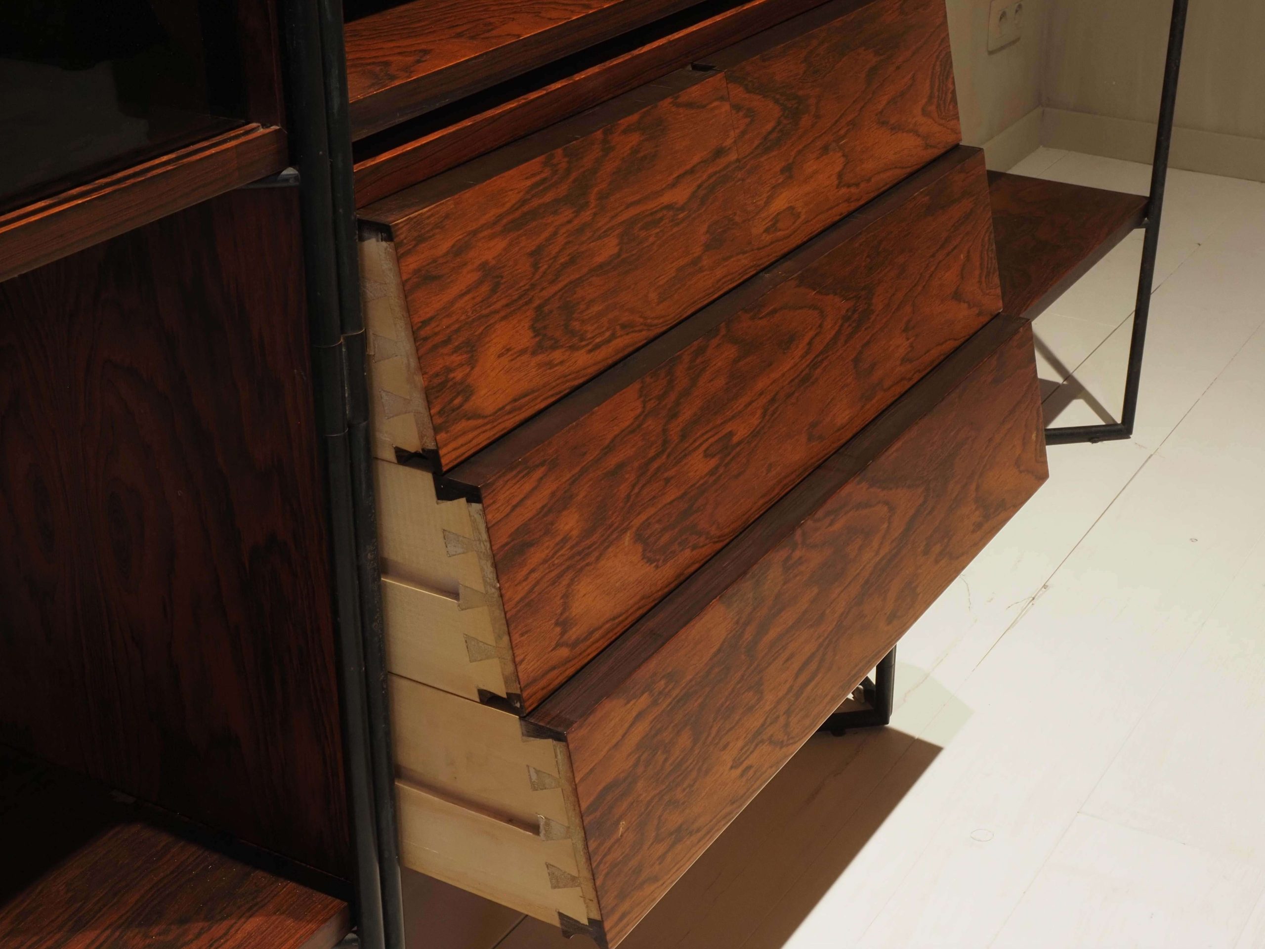 In excellent condition with no wear, this rare bookcase, tied to Nakai’s 1955 Selettiva del Mobile prize under judges like Gio Ponti, bridges cultural design philosophies with timeless appeal. Ideal for mid-century modern interiors, it offers versatile storage with its sleek design, enhancing the space with teak beauty and historical significance, perfect for collectors seeking an iconic piece of 1950s furniture heritage.