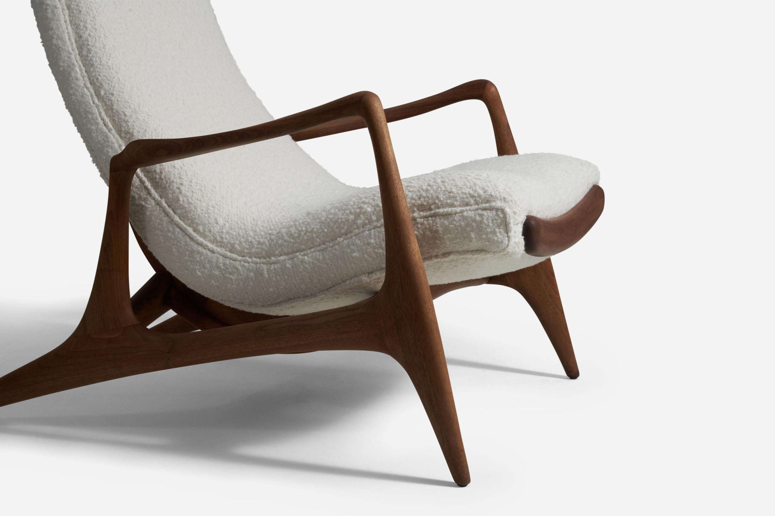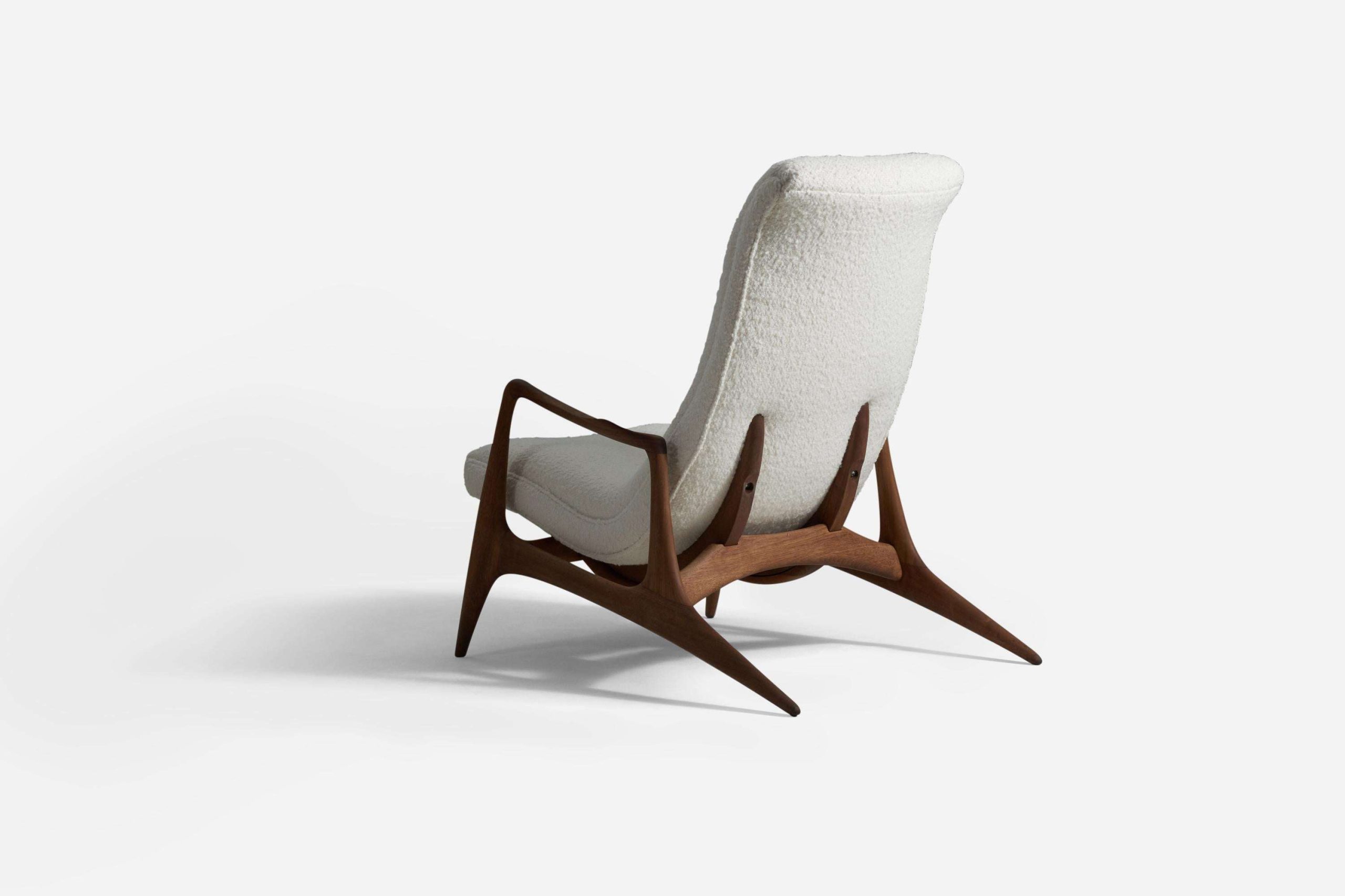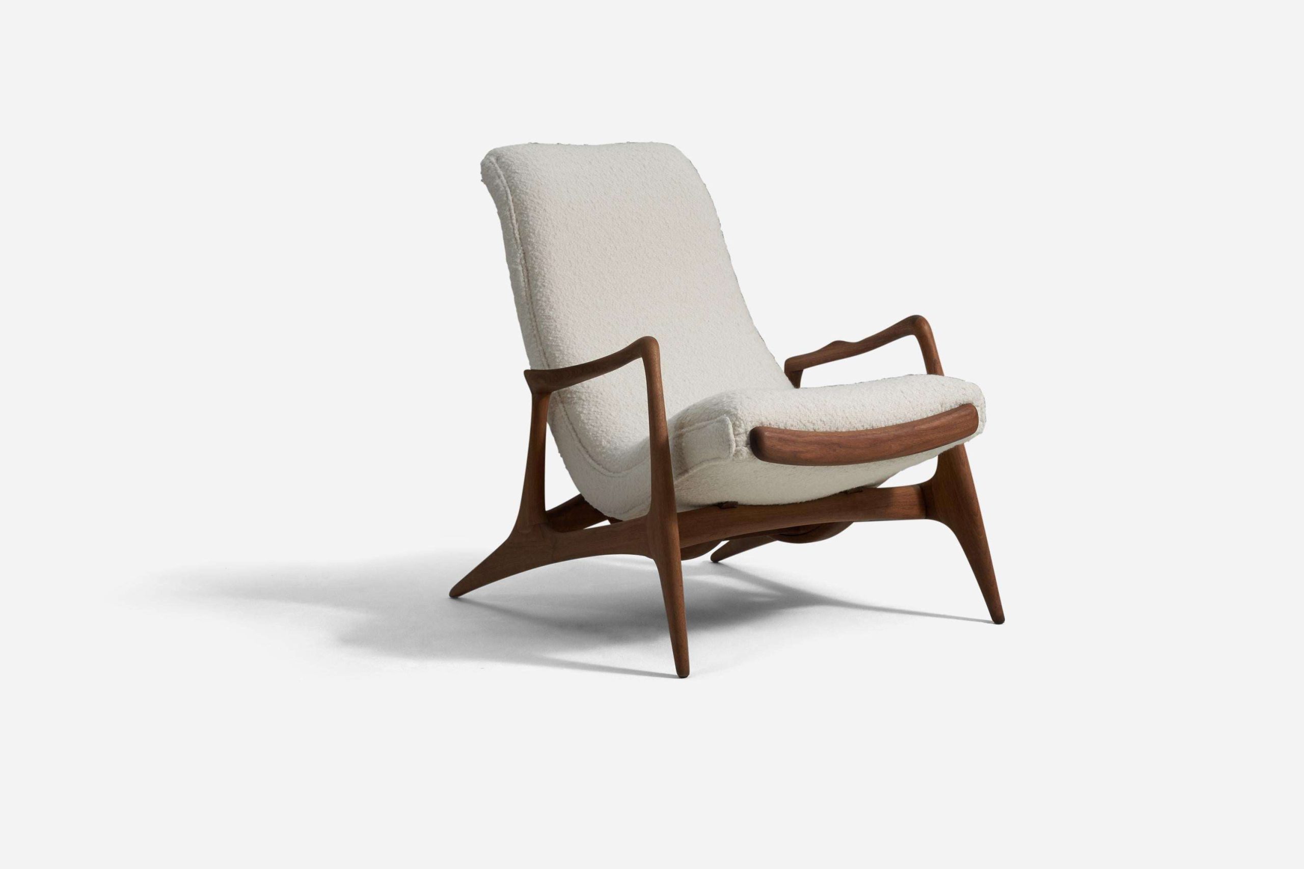 Vladimir Kagan Lounge Chair, Walnut, White Bouclé, Kagan-Dreyfuss, Inc, c. 1950