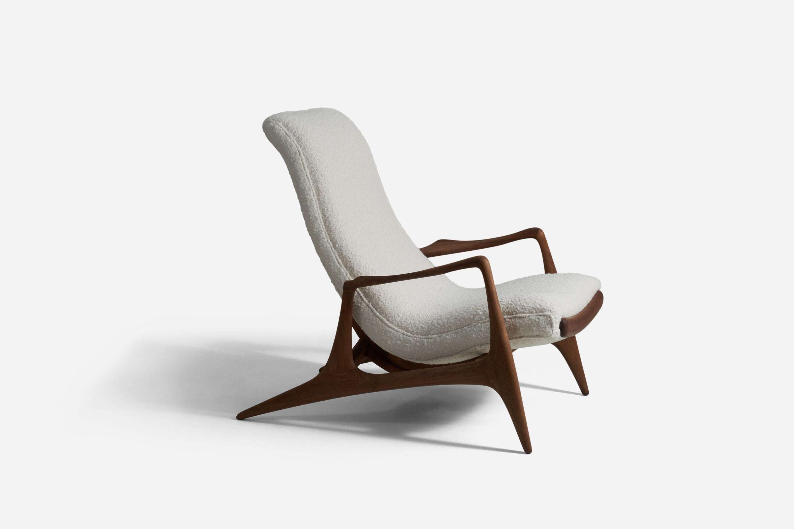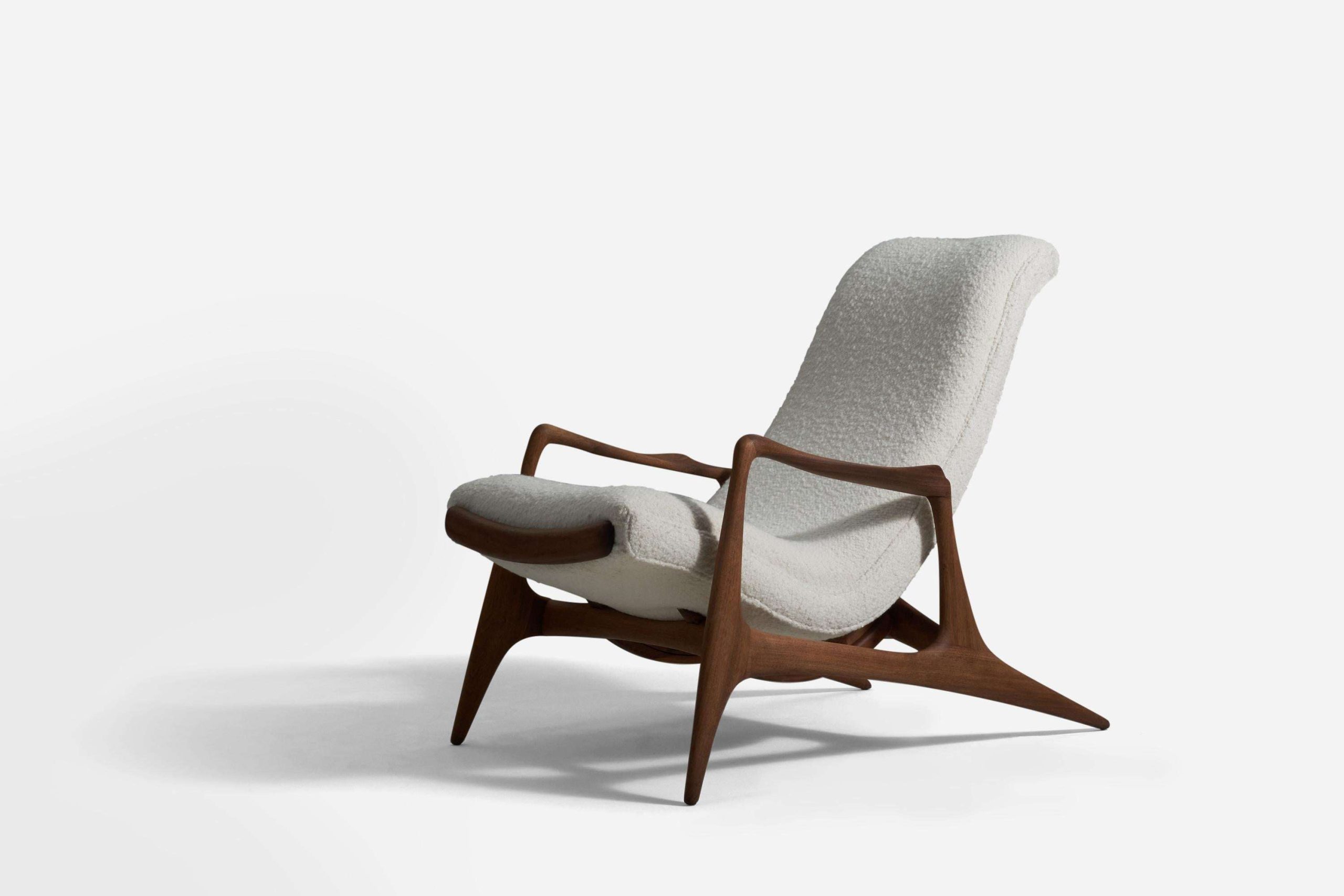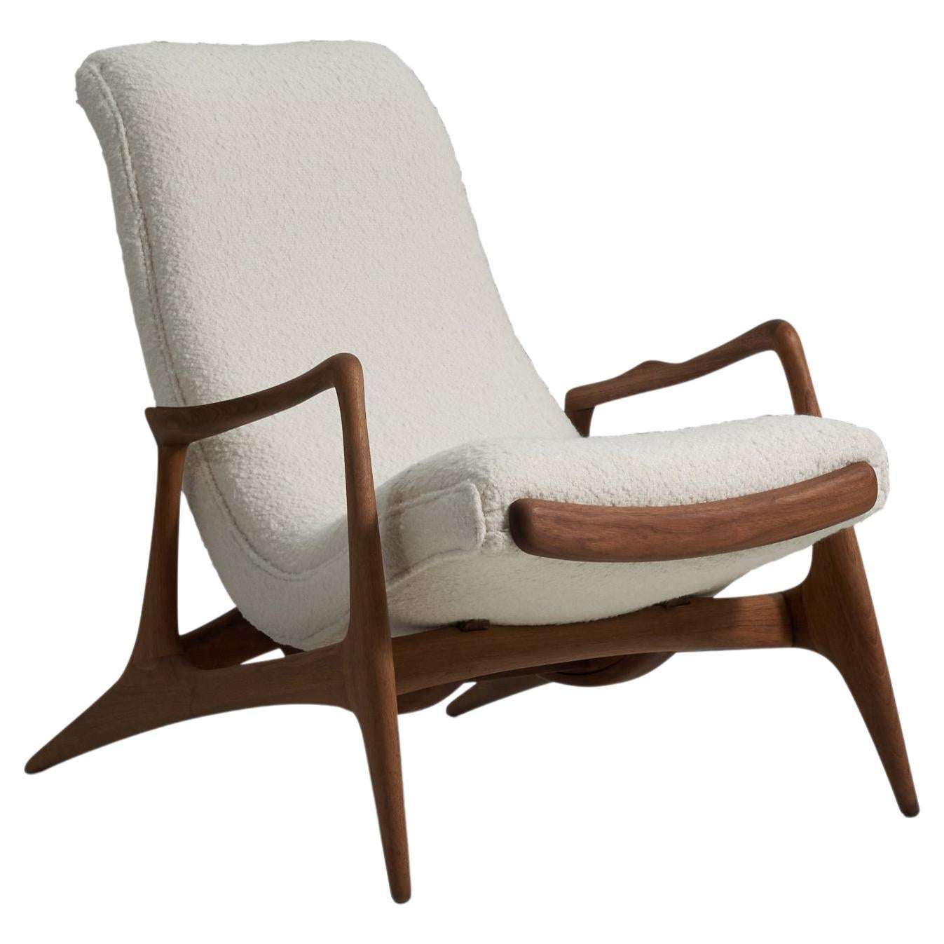 Vladimir Kagan Lounge Chair, Walnut, White Bouclé, Kagan-Dreyfuss, Inc, c. 1950