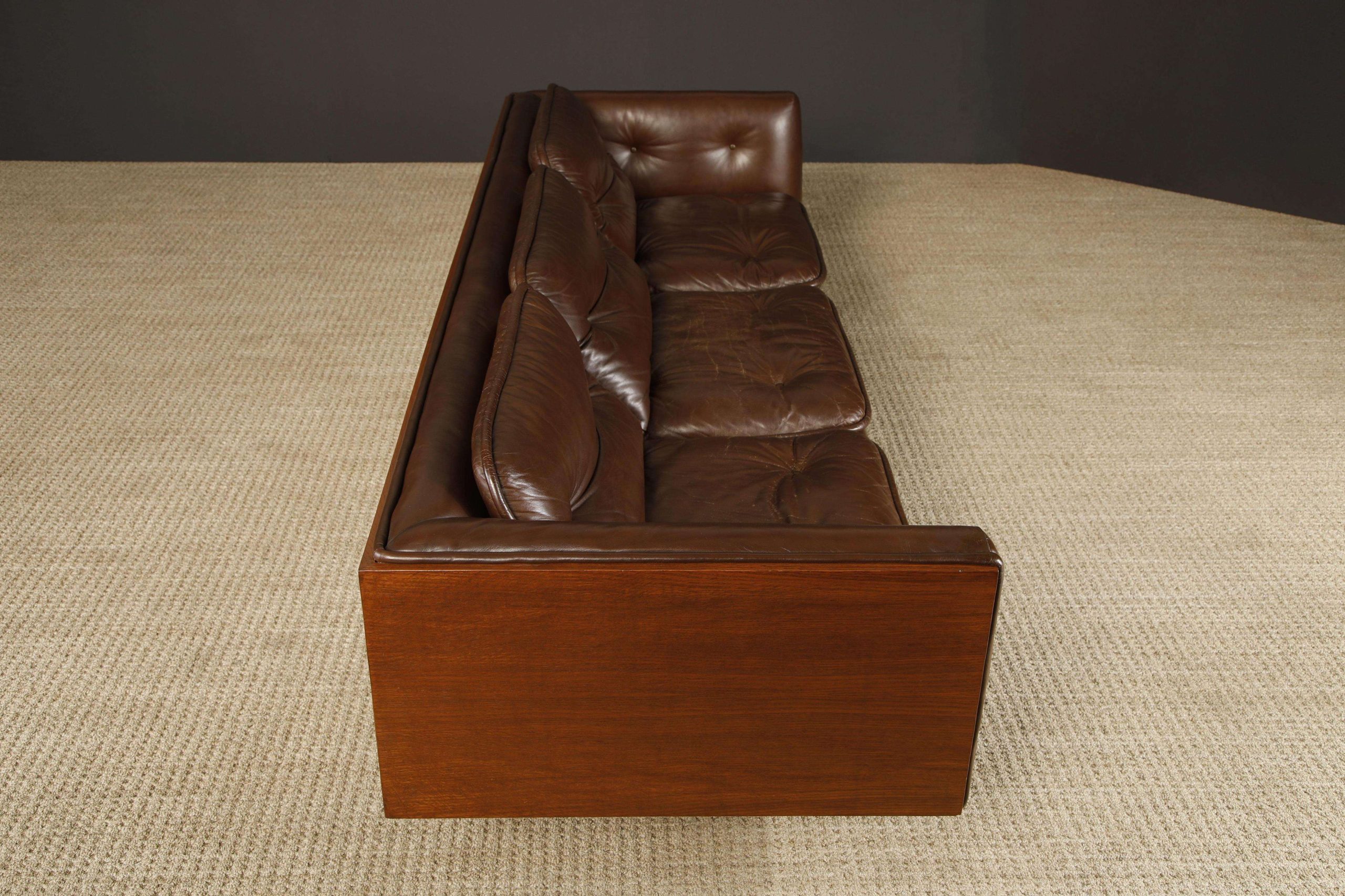 Warren Platner Walnut and Leather Floating Case Sofa for Lehigh Leopold, c. 1970